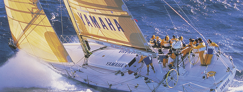 Yamaha was a main sponsor for the 1993-1994 race, which brought together a bevy of world-class teams. Japan entered the race for the first time that year, and with Kazunori Komatsu from the company's Marine Promotion Office aboard as a crew member, the Yamaha Round the World raced to a heroic victory.