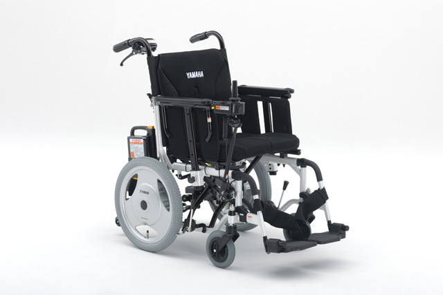 Some examples of products born from the control technology in Yamaha surface mounters are the JW Swing (#2) complete built up (CBU) electrically power-assisted wheelchair and the JWX-2 attachable power-assist unit for wheelchairs. Using technology from Yamaha’s PAS electrically power-assisted bicycles, these power-assisted wheelchair products respond to force applied by the user to the main wheel hand rims to apply a corresponding drive force from an electric motor to help propel the wheelchair. However, while bicycles have a single drive wheel, wheelchairs have two separate drive wheels. This difference brings in the need to coordinate the movement of the two wheels. Also, unlike a bicycle where the feet of the rider are always on the pedals, moving a wheelchair forward involves an interval when the hands must leave the rims at the end of a push to reset the user’s grip for the next push. There is also a difference in the amount of force applied and timing of the pushes on the left and right hand rims to maneuver the wheelchair. As a result, smooth movement cannot be achieved simply by applying the assist force as it is. So, Yamaha developed a sophisticated method of control to coordinate the assists and make the wheelchair move naturally. The assist force is programmed to make a smooth transition when the user’s hands leave the rims to re-grip for the next push and to enable smooth motion going up or down hills. The intricate details of this control draw on the servomotor technology attained from Yamaha’s development of industrial machinery.
