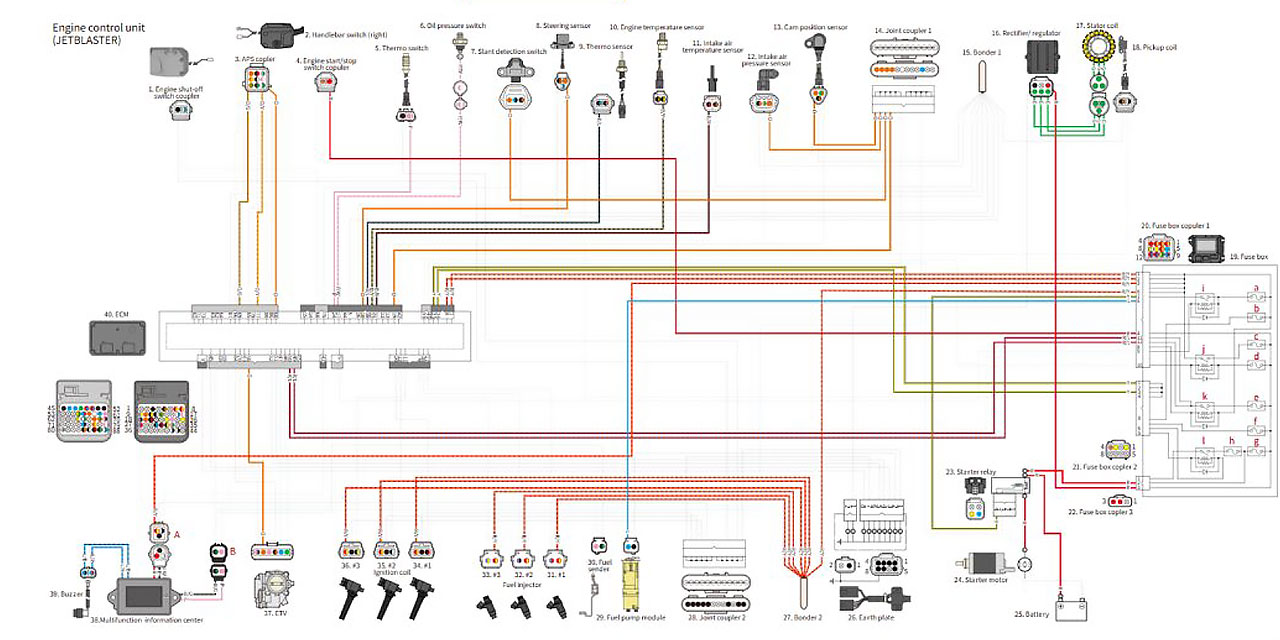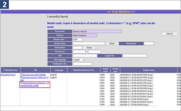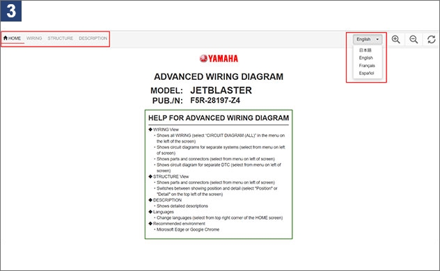 Dans le présent numéro de Chantey, nous allons vous présenter les schémas de câblage avancé et leurs caractéristiques. À partir de 2022, les schémas de certains modèles de WaveRunner/embarcations sportives sont devenus disponibles. Avant les schémas de câblage avancé, les diagnostics d’erreurs exigeaient de tracer le câblage sur les schémas du manuel d’entretien afin de localiser l’endroit défectueux. En ajoutant les schémas de câblage avancé au manuel d’entretien, les informations nécessaires peuvent désormais être extraites et affichées en HTML, facilitant ainsi la lecture de schémas de câblage complexe. Ces schémas de câblage avancé sont un outil extrêmement utile pour localiser une panne dans des systèmes électriques. Dans le présent article, vous apprendrez quelle est leur commodité et comment les utiliser dans votre travail d’entretien quotidien.