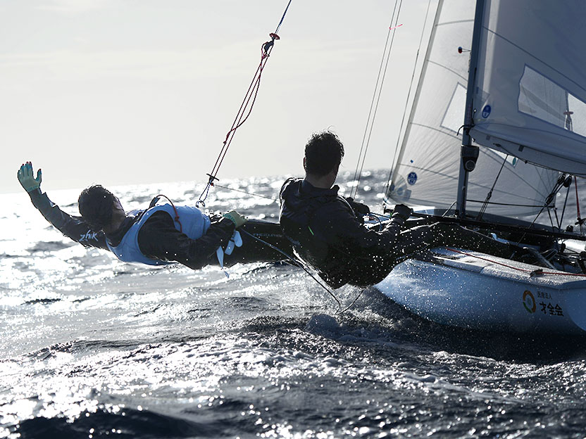 De novembre à février, nous effectuâmes un voyage d’entraînement à travers l’Europe, en commençant par les îles Canaries. Comme cela faisait longtemps que nous n’avions plus participé à des compétitions d’outre-mer, notre objectif principal cette fois-ci fut l’évaluation de notre position actuelle très tôt et de retrouver les sensations de faire une course à l’étranger. Nous identifiâmes les points à améliorer et vers la moitié du voyage d’entraînement, l’attention fut déplacée vers le fait de s’y attaquer et le réglage de l’équipement afin de se préparer pour la saison des courses qui commence en mars. Nous fûmes bénis par une météo favorable, ce qui nous a fourni suffisamment de temps pour à la fois nous entraîner en mer et notre conditionnement physique, créant ainsi un voyage d’entraînement hautement productif. Par ailleurs, s’entraîner aux côtés d’athlètes d’élite de divers pays fut une expérience extrêmement précieuse, ce qui est rarement possible au Japon. Les championnats européens commencent à partir de mars, et ils seront suivis par une série de compétitions consécutives qui mèneront au Trofeo Princesa Sofía. Notre premier but est d’être désignés en tant qu’équipe nationale pour les jeux Olympiques de 2028 par la Fédération de voile du Japon. Nous ferons de notre mieux et visons le podium. Merci à vous pour votre soutien et vos encouragements continus. Veuillez suivre nos futures courses !