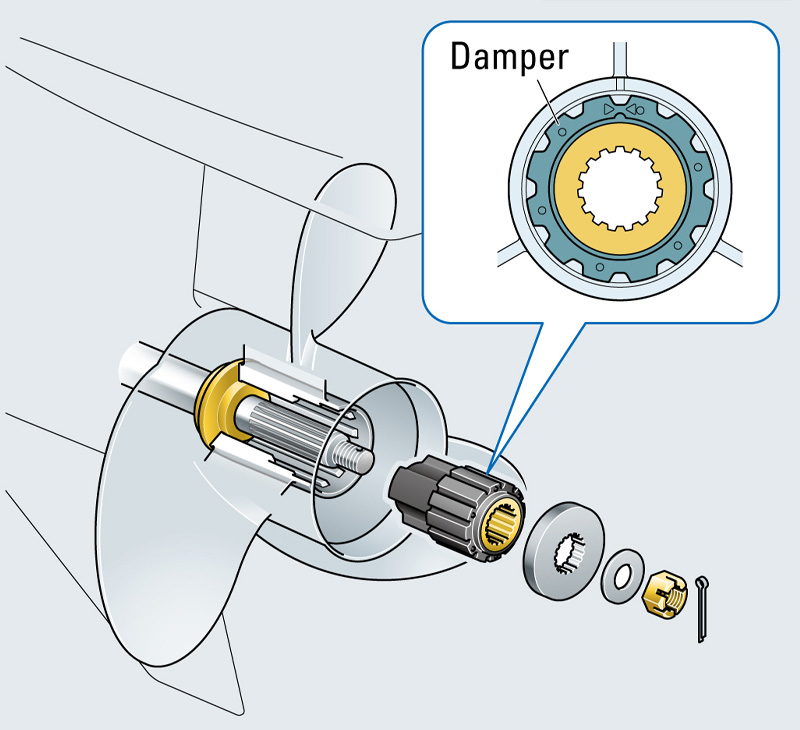 Yamaha's exclusive new smooth shift dampener system greatly reduces noise commonly associated with shifting gears. It will be available with renewed Saltwater Series II propellers.