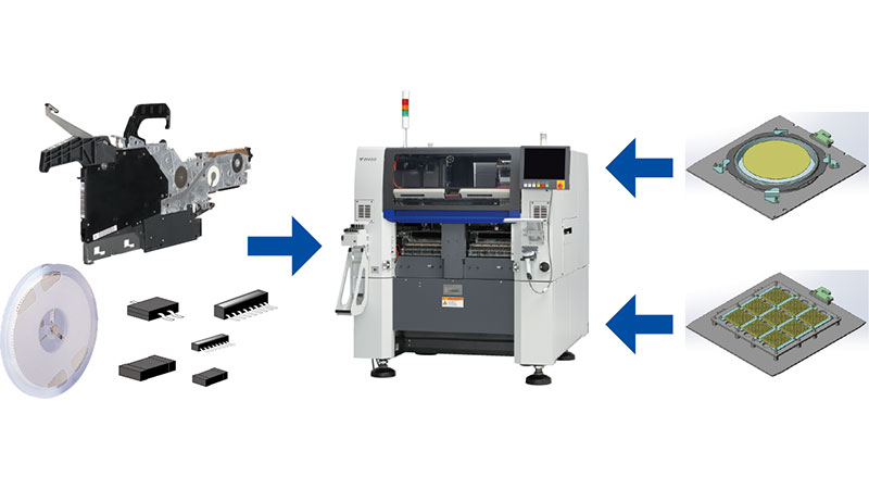 Supports both SMD and semiconductor mounting in a single machine. Removes the need for multiple machines, minimizing floor space and cost while enhancing production capability across a wide range of products. - High-speed and high-accuracy mounting