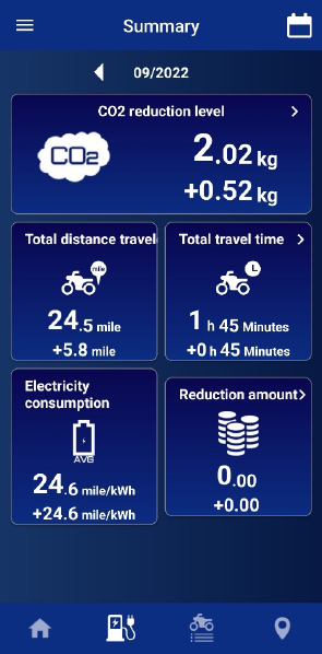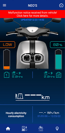 Remaining battery level, estimated traveling range, and other information can be checked on the app’s home screen.