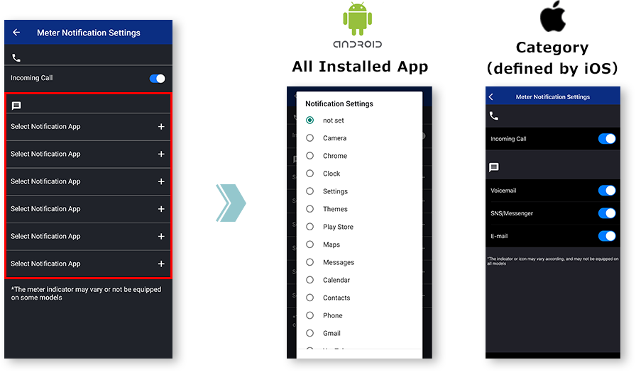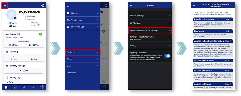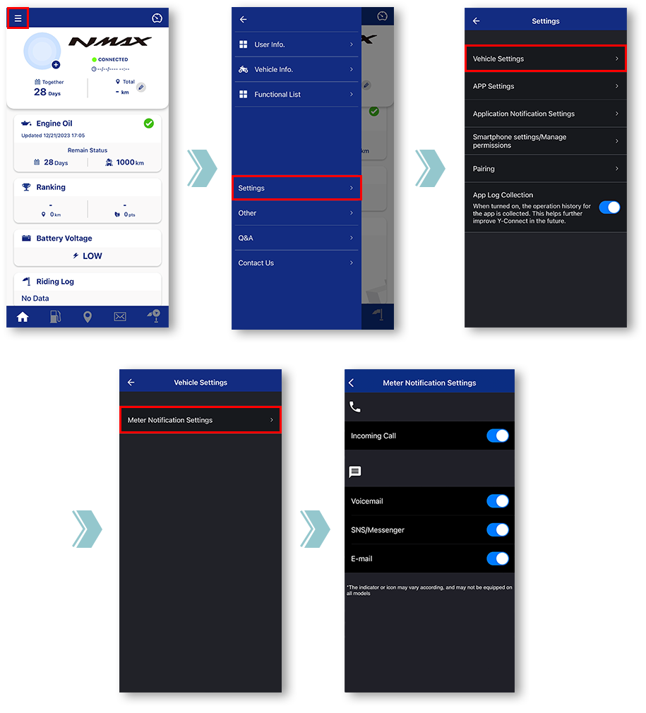 *Notifications will not be displayed when the app and the motorcycle are not connected.
