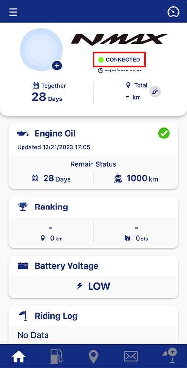 You can check the connection status in the text under the motorcycle name.