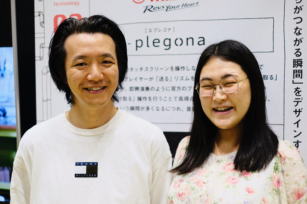 音ゲーが好きで、自身でも電子工作で作ったことがあるというヒロトさん・みもさん。「相手のペースに合わせつつ途中アドリブで交代するのが、セッションのようで楽しかった」「二人の息が会うにつれ、グラフィックや音で盛り上がっていくのがいいですね」