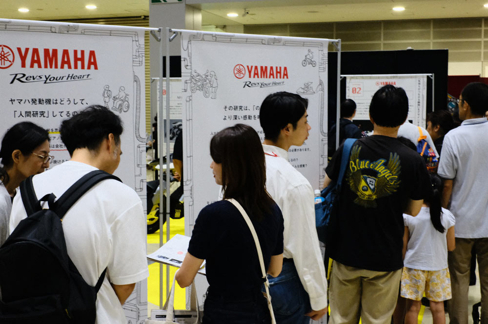 研究のキーパーソンである末神 翔さんをはじめ、開発や研究に携わっているヤマハ発動機のメンバーが直接説明を行なっていたこともあり、来場者は各マシンの仕組みなどにも興味津々。