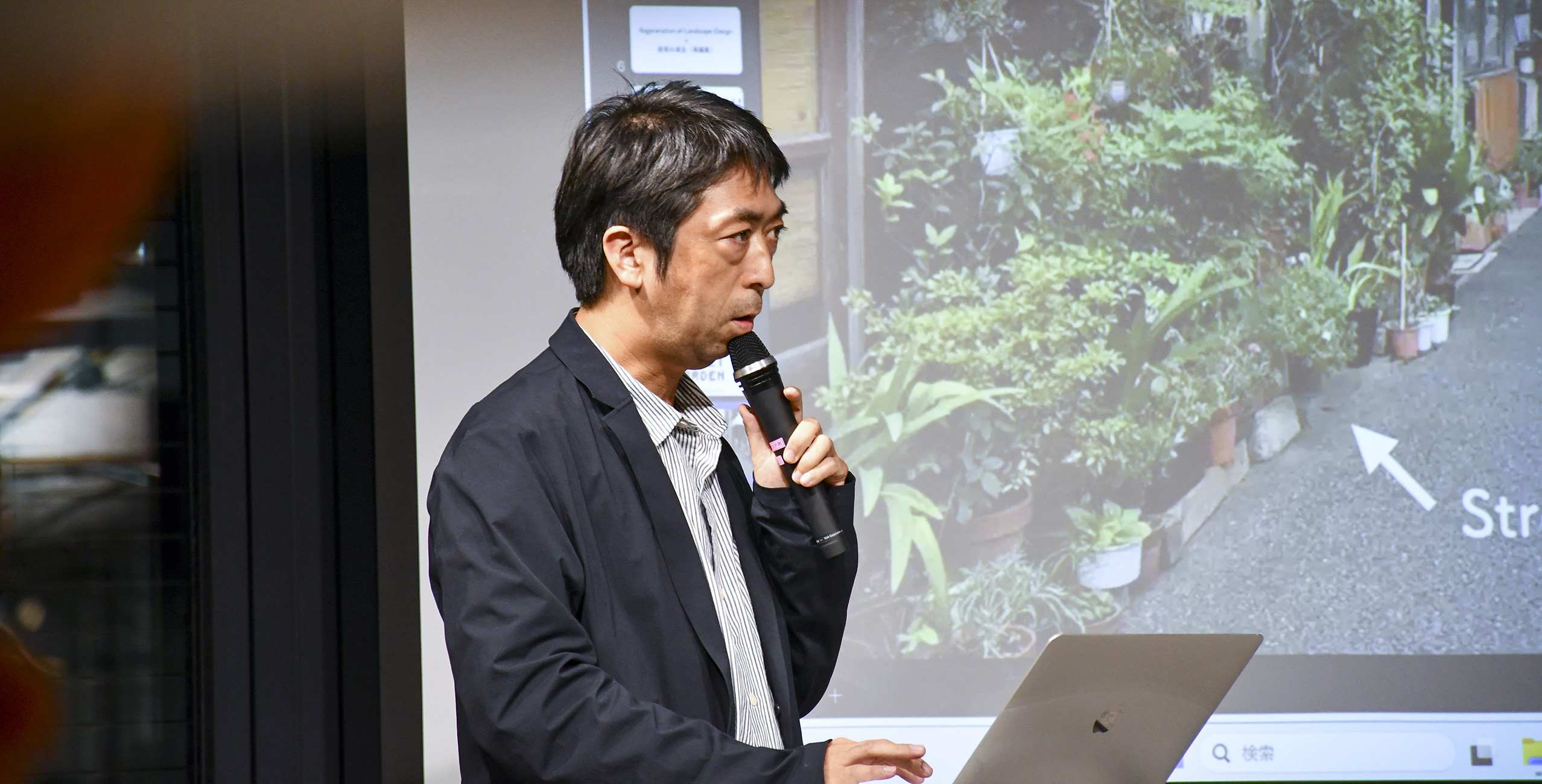 続いて登壇したのは、ランドスケープデザイナーの三島由樹さん。八王子出身で、2年前に事務所を地元の八王子へ戻し、元々は駐車場だった場所を地域に開かれた庭に変えた「ajirochaya」という施設で、デザイン事務所を営んでいます。