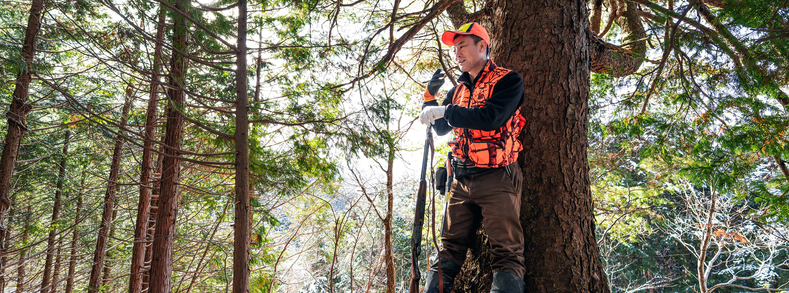 狩猟と林業、二足のわらじで里山保全に取り組む猪鹿庁・興膳健太さん。山から獲物が消えるという窮地の先に見出した「30年後の森」へ続く道とは。