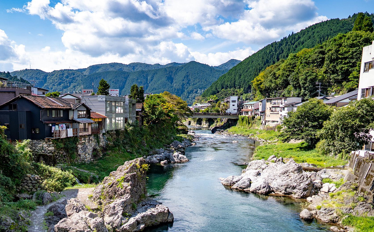 郡上の山間部を源流とした全長約166kmの一級河川です。実は、郡上は東京23区を大きく上回る面積を持ち、山々に囲まれた谷あいにいくつもの集落が点在しています。それらをつなぐように貫いているのが、長良川とその支流たち。