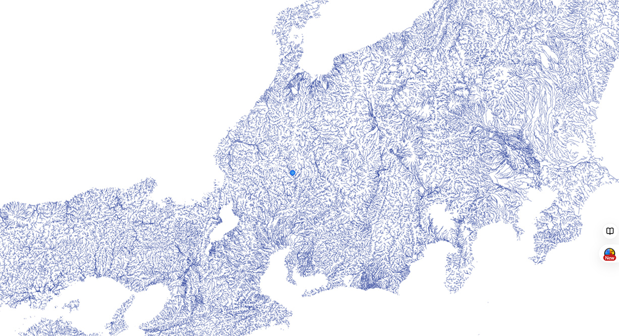 興味深いのは、川の源流がたった一点から始まるのではなく、あちこちから絶えず湧き出しているということ。地図を拡大していくと、一本の線に見える川が、実は無数の湧水の集まりでできてることが分かります。