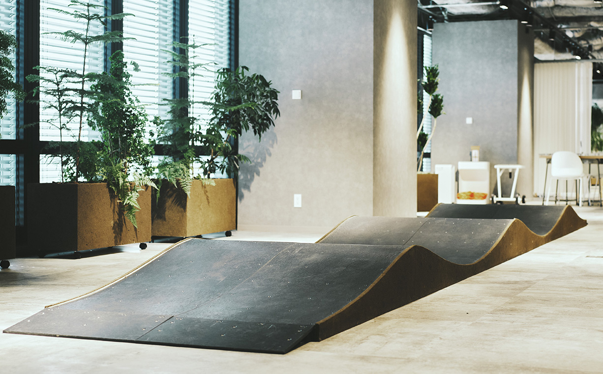 成富それってつまり、自然との共生の視点だと思うんですよね。なのでリジェラボに置くパンプトラックやプランターには、森町の土を左官材として使うことに決めたんです。ヤマハ発動機にとっても特別な場所である森町の記憶を横浜のオフィスに持ち込むことで、企業のルーツと自然とのつながりを感じられる空間を目指しました。