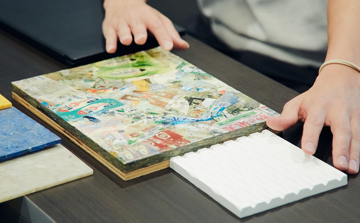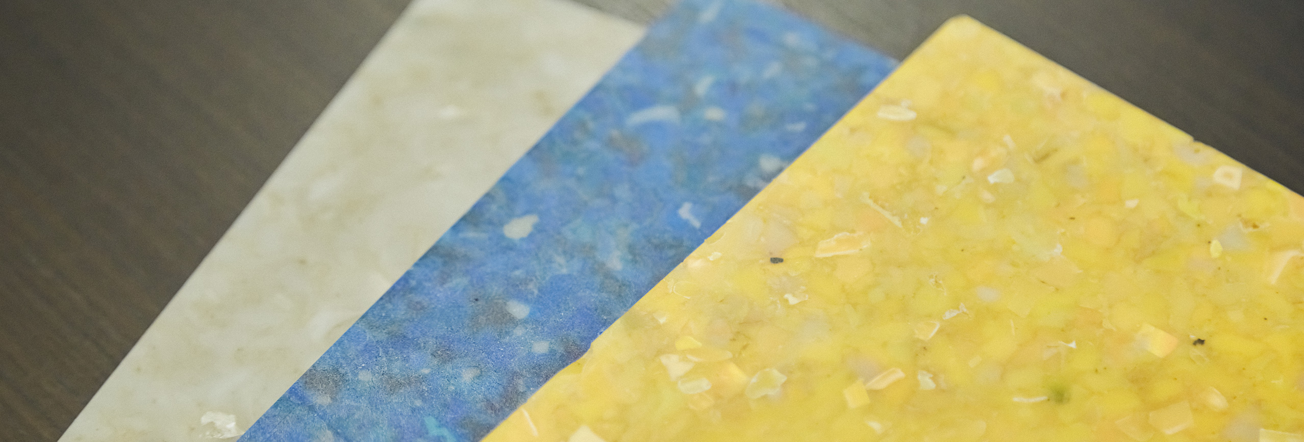 具体的には、回収した廃棄プラスチックを、内装材や建材といった板材に生まれ変わらせるマテリアルリサイクルの技術を開発しました。この技術を活用した商品づくりはもちろん、企業の廃棄プラスチック削減に向けた伴走支援も行っています。