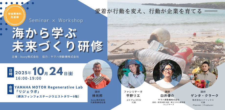 buoy株式会社主催の『海から学ぶ未来づくり研修』に、海ごみプロジェクト担当・臼井優介(ヤマハ発動機株式会社 技術研究本部 共創・新ビジネス開発部)が登壇しました。