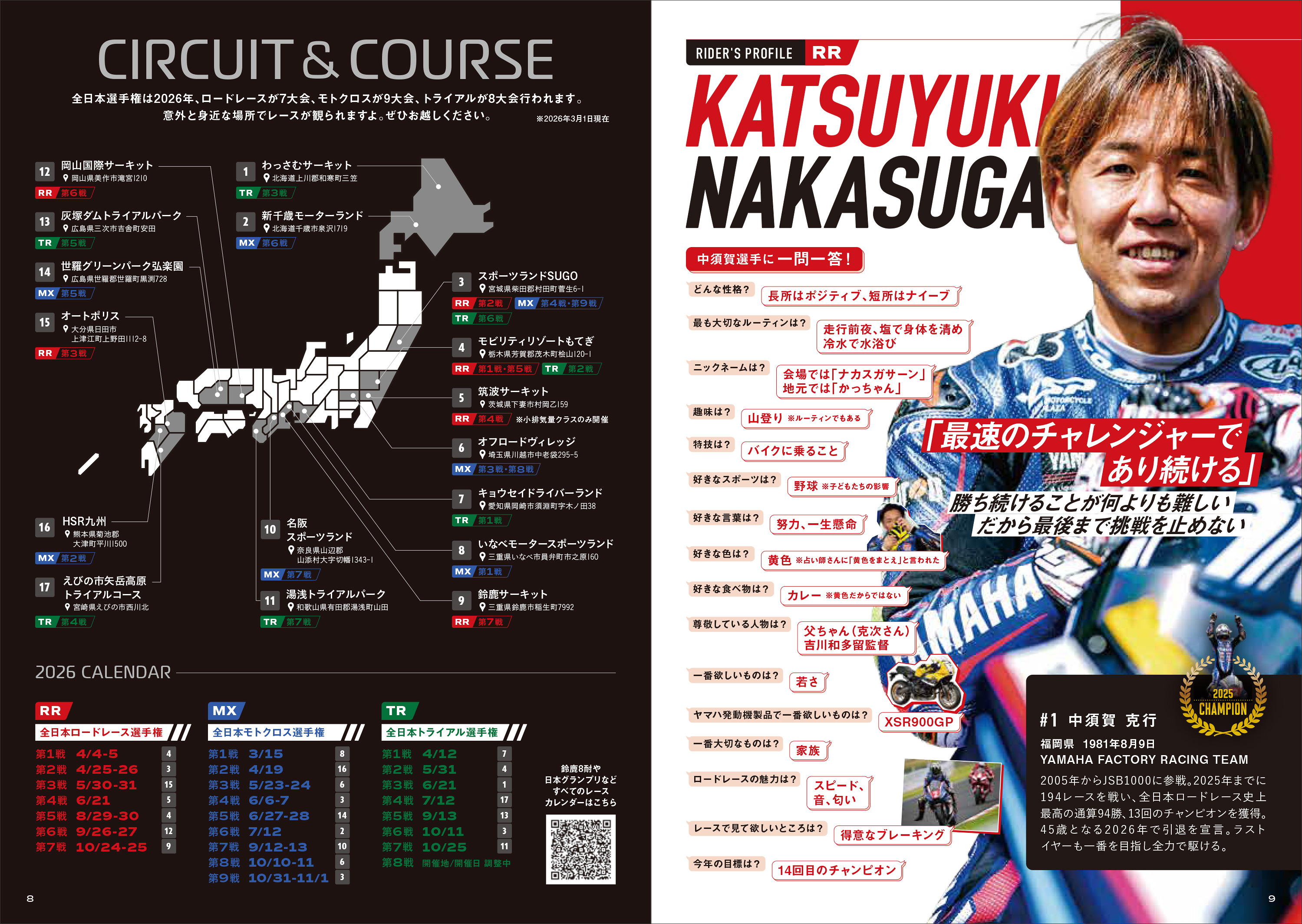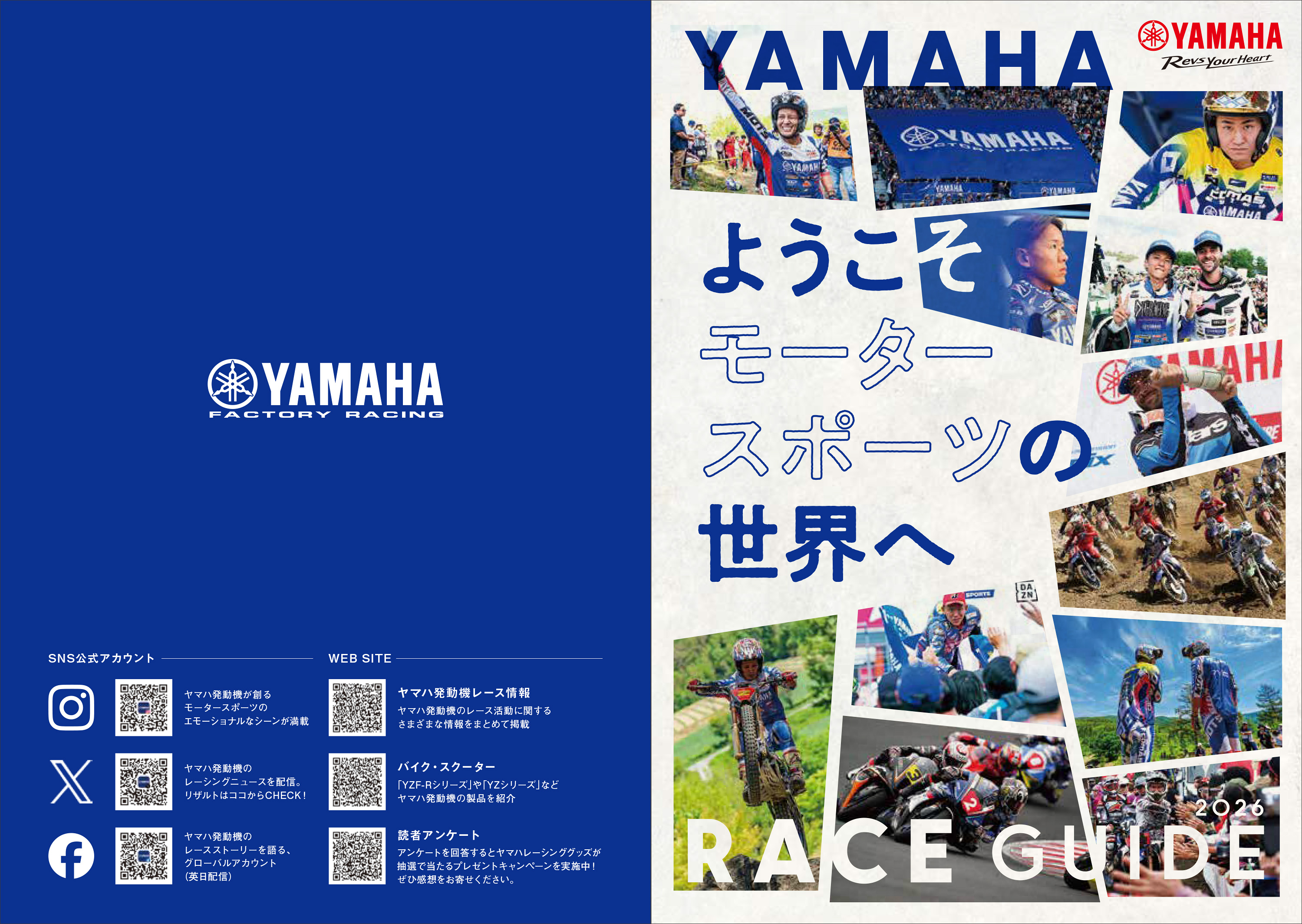 「YAMAHA RACE GUIDE 2026」は、たくさんの方に「モータースポーツの世界を知っていただきたい!」。全国のサーキットやコースを「ヤマハファンの皆さんとブルーに染めたい!」という思いを込めて、制作したガイドブックです。