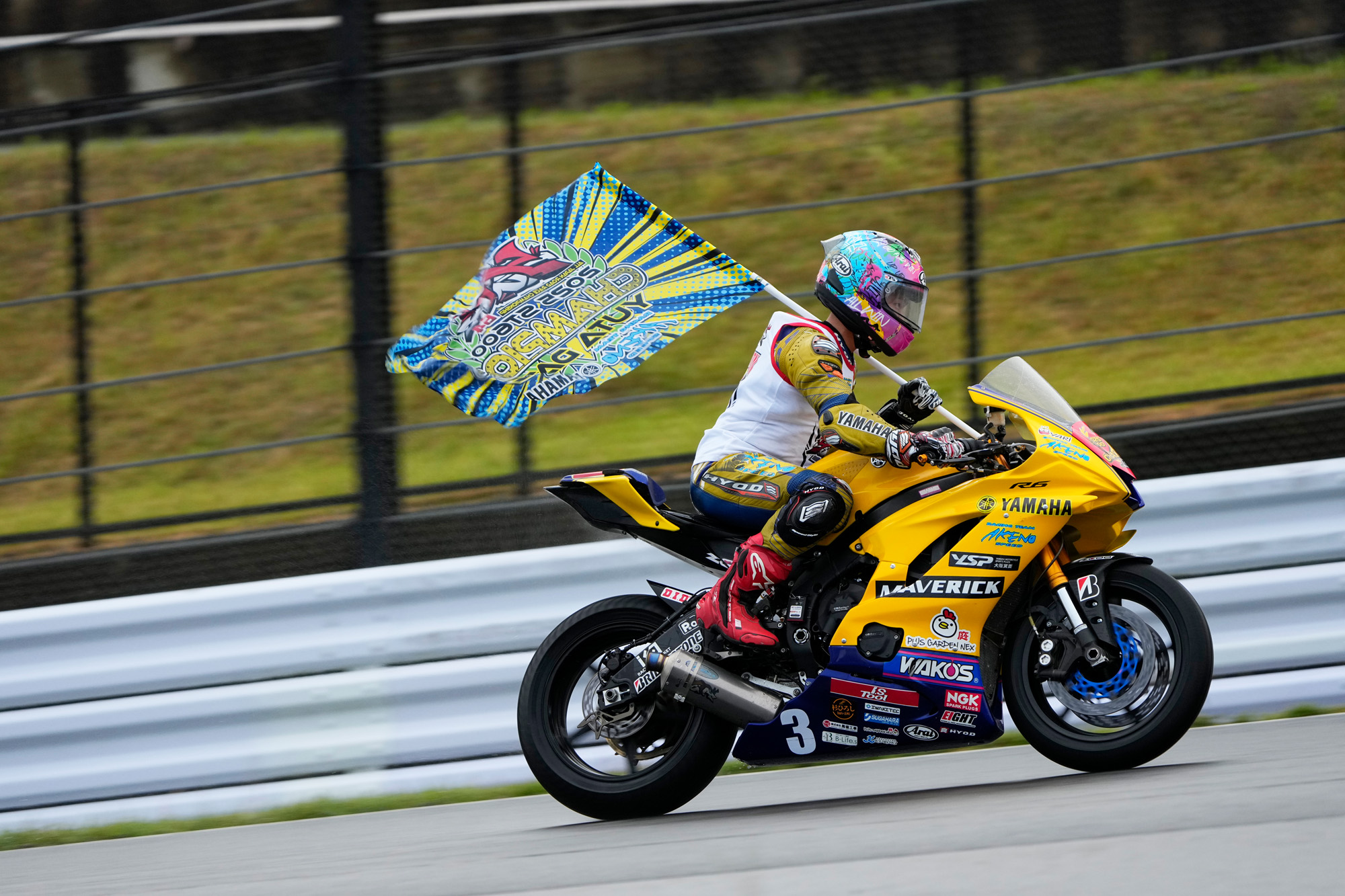 2025年10月25-26日、三重県の鈴鹿サーキットで第57回 MFJグランプリ スーパーバイクレース in 鈴鹿が開催され、「AKENO SPEED・MAVERICK」から「YZF-R6」でST600に参戦する#3伊達悠太選手が、ウエットコンディションの中で行われた決勝で5位を獲得し、2017年のJ-GP3以来、ST600では初となるチャンピオンを獲得しました。