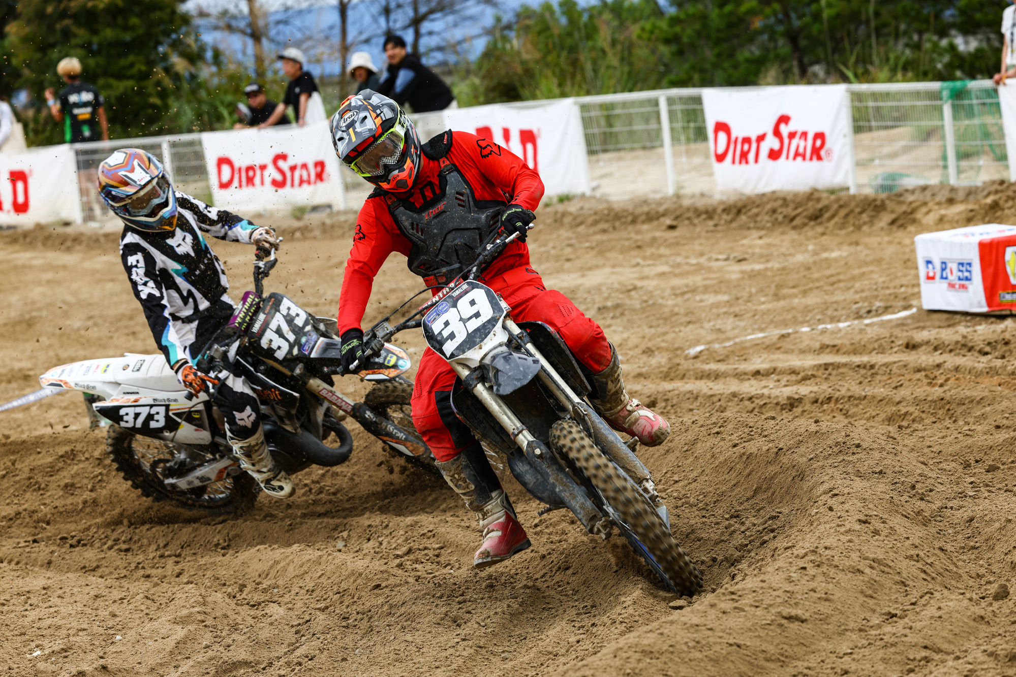 その後方では#39平岡正悟選手(43歳)と#373寺⽥楓波鷹選手(16歳)がテール・トゥー・ノーズの2位争いを展開。「Yamaha YZ125 BLU CRU Cup」の一つの理想系である、経験値を持ったベテランと発展途上のヤングライダーによるマッチアップが実現したのです。結果は平岡選手が先行しこれを寺田選手が追撃、一度は寺田選手が前に出るも平岡選手が逆転して2位となりました。レースを終えた二人は、勝ち負けでの喜びや悔しさとともに、「バトルが楽しかった」と話しており、互いに良い刺激が与え合ったようです。
