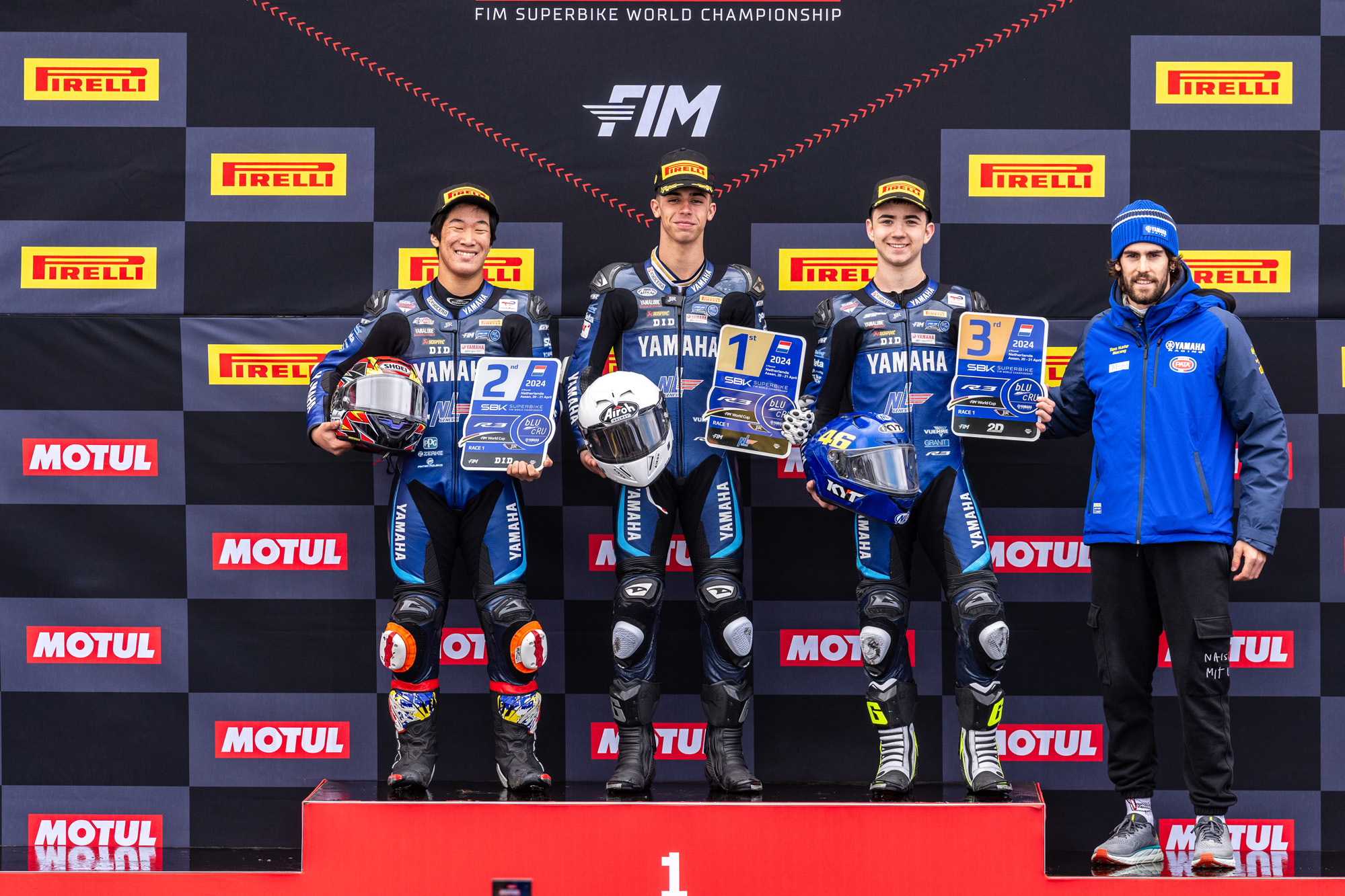日本におけるファーストステップが今年、「JP250」から名称が変更となった「JP-SPORT(ジェーピースポーツ)」で実施する「YAMAHA YZF-R3 スカラシップ」です。初代王者は高橋匠選手、2年目は久川哲平選手が勝ち抜いて欧州の「Yamaha R3 BLU CRU FIM World Cup」に年間エントリーし、ほとんどが初となる欧州のサーキットを舞台に表彰台を獲得するなど、チャンピオンには届きませんでしたが、それぞれしっかりと爪痕を残してきました。