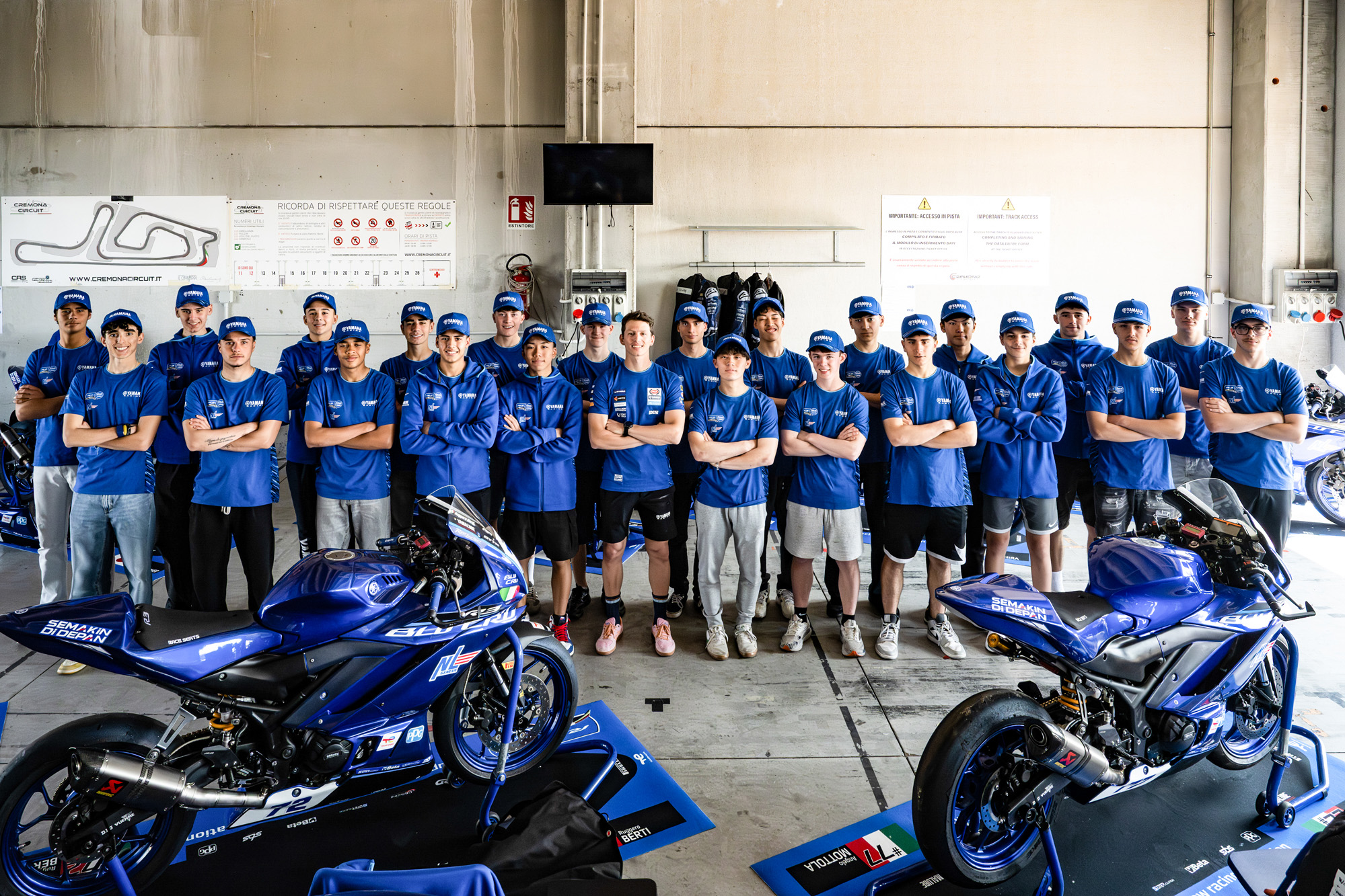 当社をはじめとする世界中のグループ企業では、モーターサイクルやモータースポーツの普及など、多岐にわたる役割を担った「BLU CRU(ブルー・クルー)」活動を展開しています。特にモータースポーツ部門は、オン・オフ両カテゴリーで才能ある若手ヤマハライダーを発掘するとともに、将来は当社とともに、モータースポーツをはじめさまざまな領域でともにチャレンジしてくれるライダーの育成を目指しています。