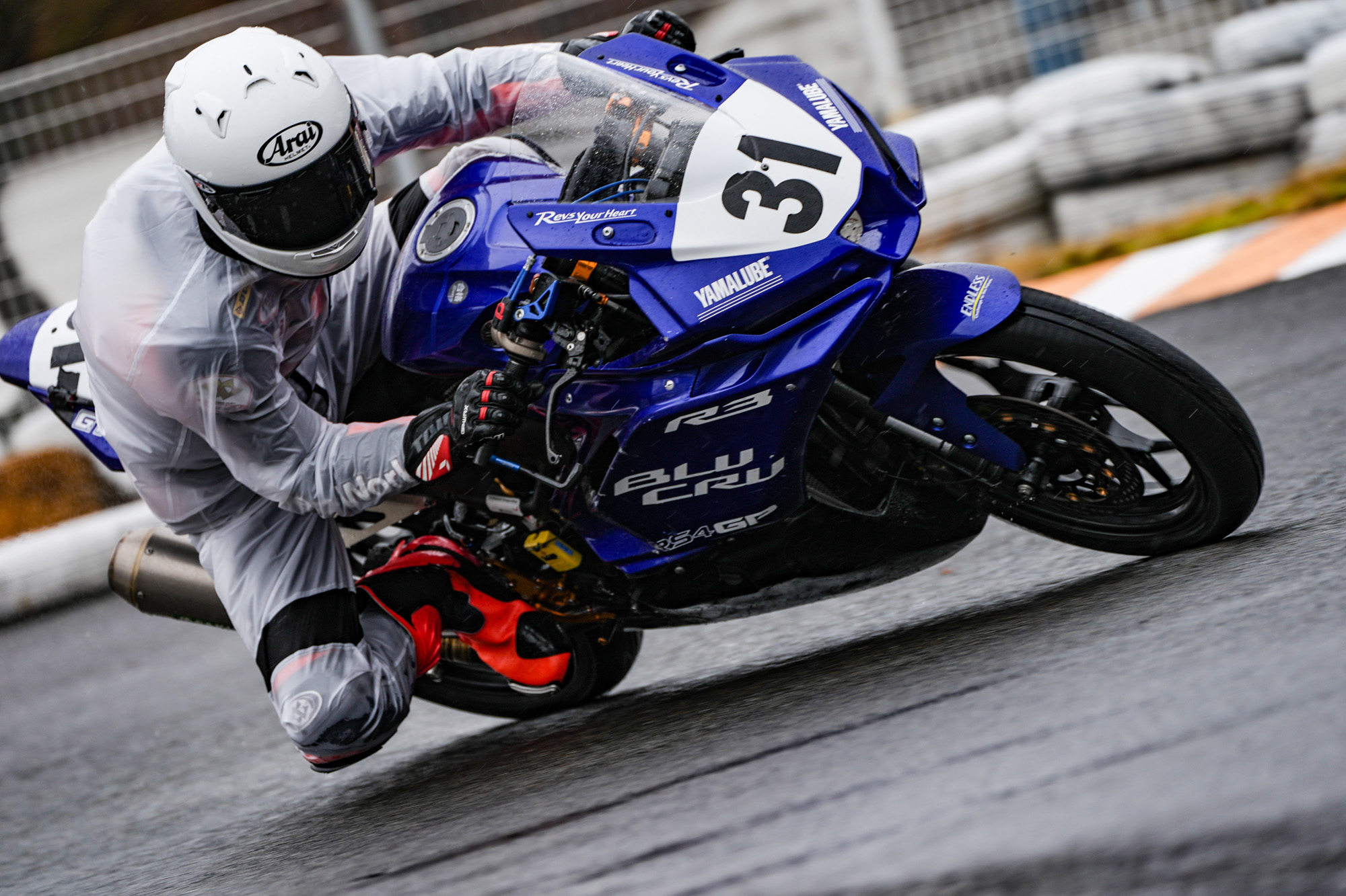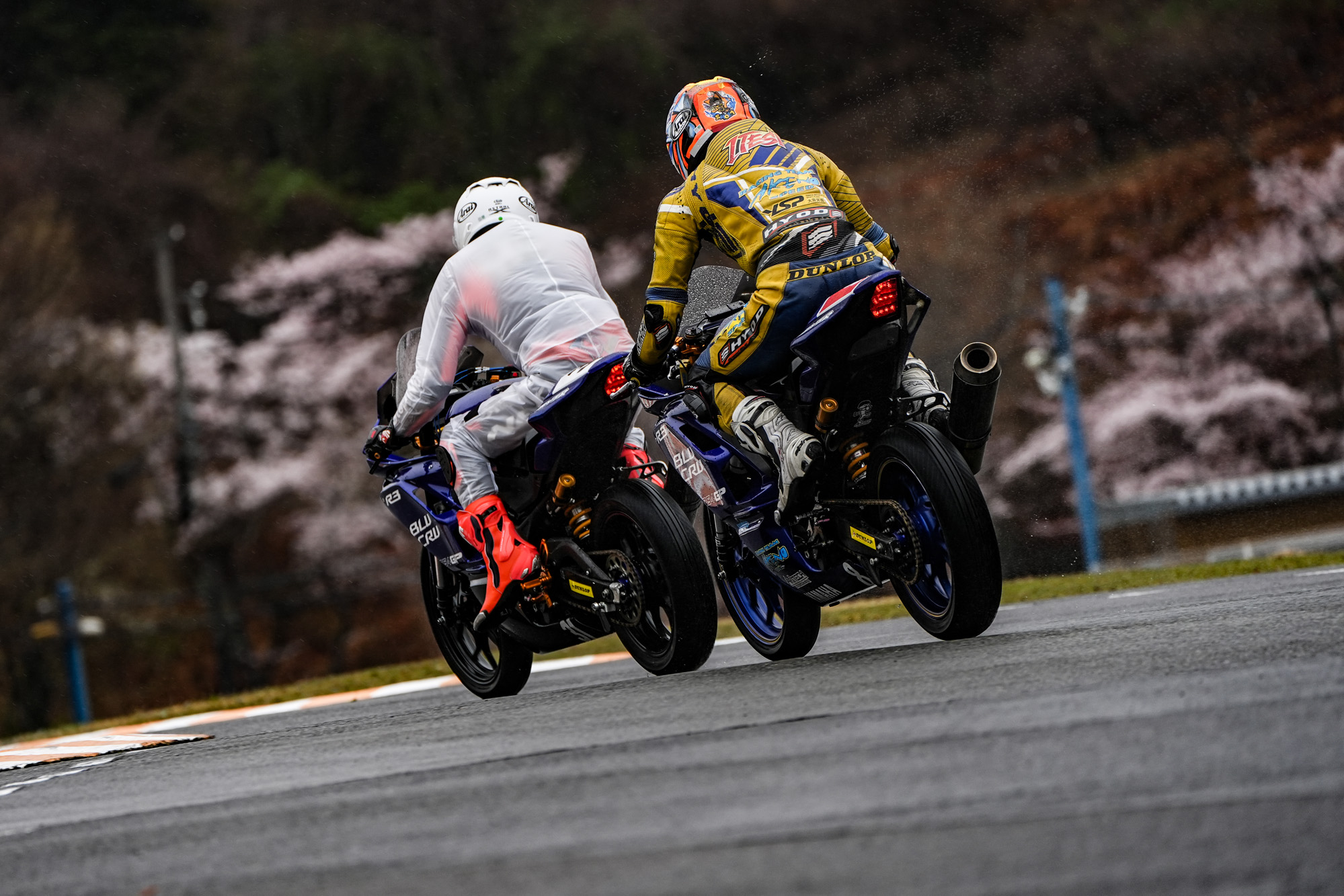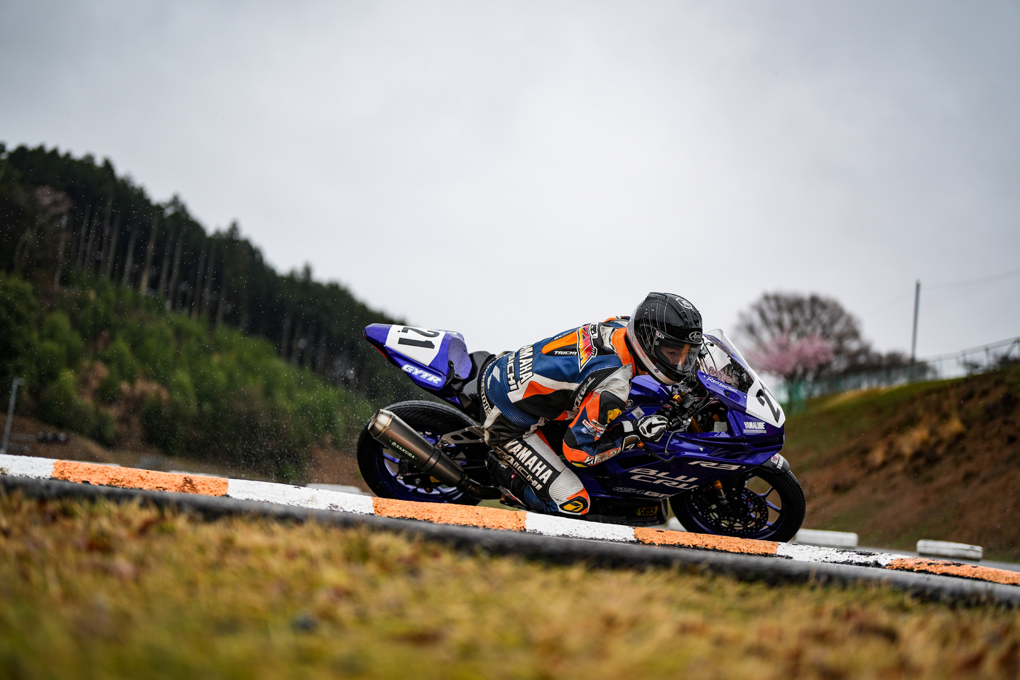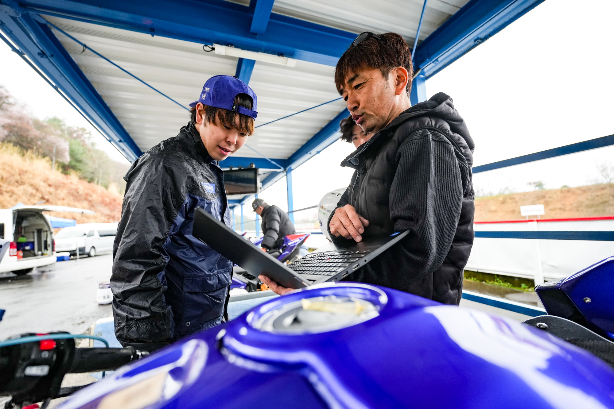 初日は小雨が午前中から降り続くあいにくの天候となりましたが、早朝から恒例のランニングとストレッチを通じて身体を温め、17時頃までじっくり走行。ドライとなった2日目も含め、とにかく圧倒的な周回数を重ね、相棒となるR3の習熟を高めていきました。