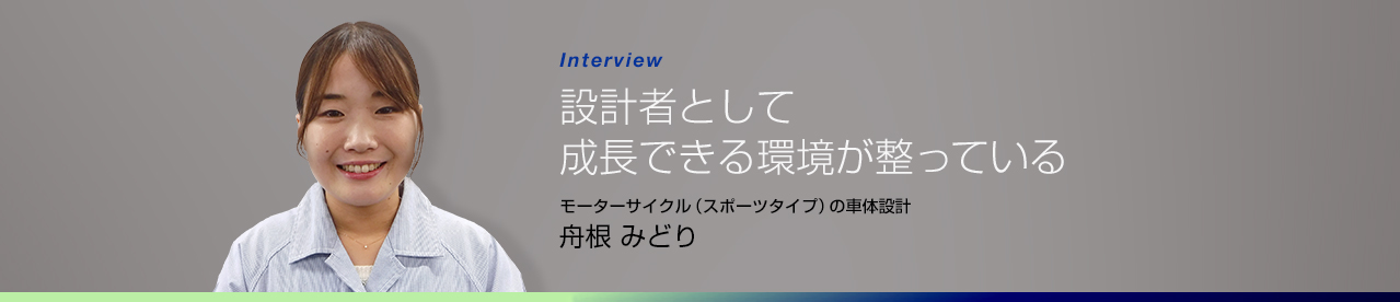 モーターサイクル(スポーツタイプ)の車体設計を担当する社員が「仕事内容」「やりがい」「この仕事に向いている人物像」などについて語ります。