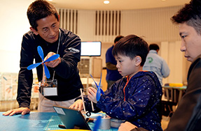 こどもたちに本物の機械と触れ合ってもらい、実際に作って、試して、失敗し、遊ぶことを通して、機械やモノ作りの夢や楽しさを知ってもらうことを目的に社内有志とOBでボランティアとして活動しています。