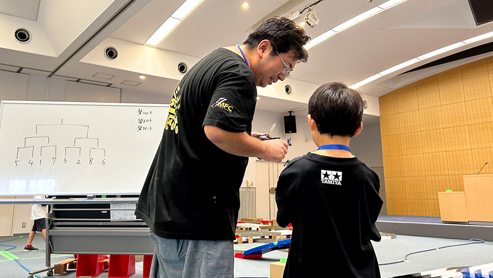また、ミニ四駆は意外にも社会性やコミュニケーション能力を育む遊びです。イベントでは初対面の子ども同士が自然に一緒に遊ぶようになり、年上の子が年下の子に作り方を教える姿もよく見られます。そうした「教え、教わる」サイクルが生まれていることに、私自身も活動を通じて気づきました。