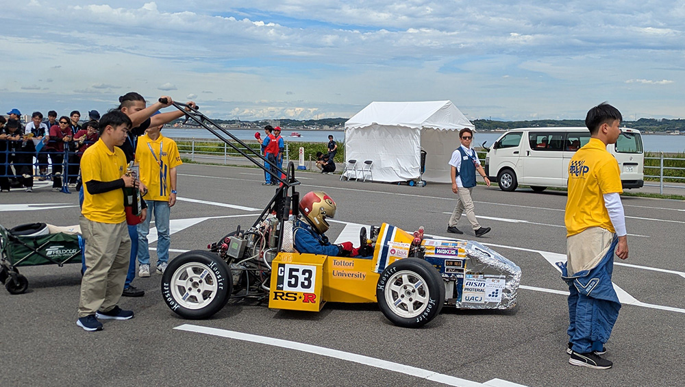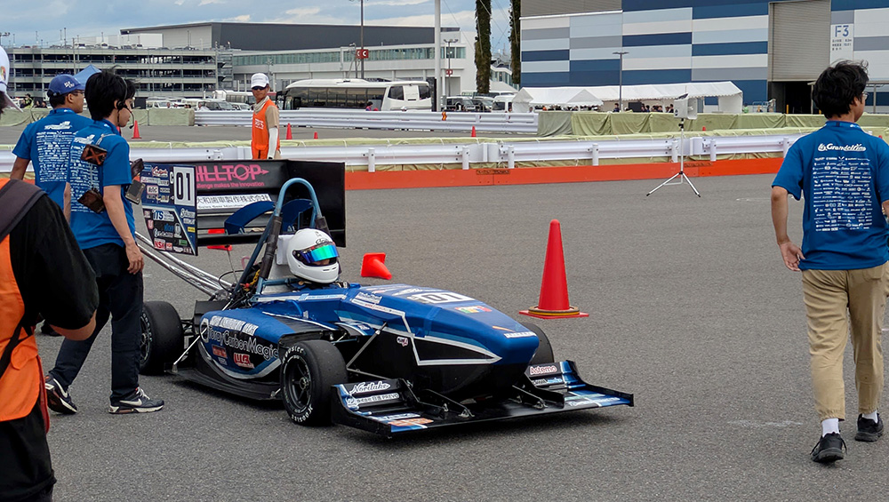 事前の書類審査や動画審査で「車が完成していて走行できること」「フレームの安全基準を満たすこと」を証明し、審査をクリアすれば本戦に出場できます。本戦ではプレゼンテーションや質疑応答、車検や試走などが行われ、デザイン・コスト・ビジネス性(静的審査)やマシンの走行性能(動的審査)が多角的に評価されます。この1年がかりのプロジェクトを、学生たちは授業や研究と並行しながら進行して本番に臨むのです。