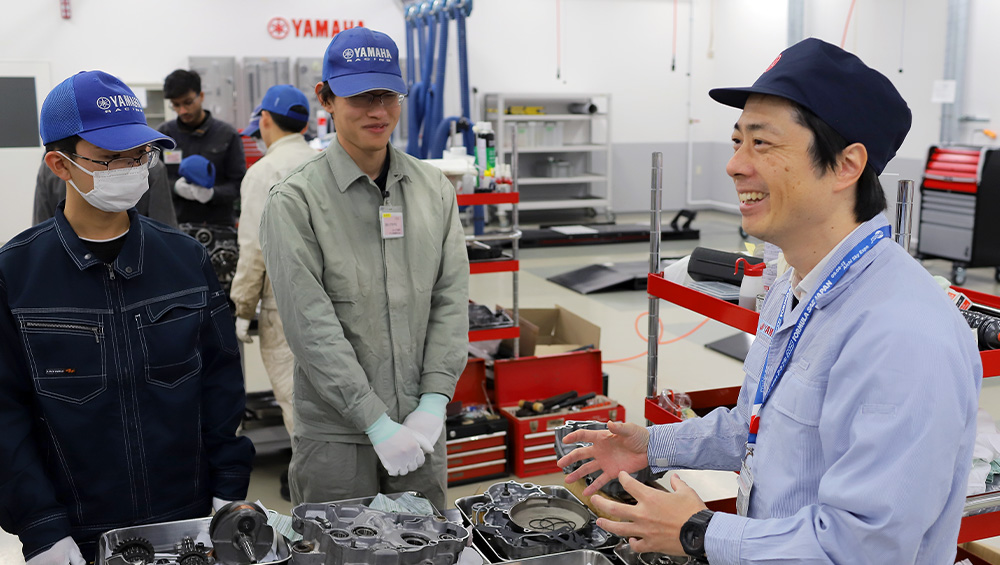 在学中にエンジンの提供とアドバイスを受けたことで、ヤマハ発動機社員の自由闊達な雰囲気に惹かれた私は、卒業後に入社して現在に至ります。入社後はコミューター・スクーター領域のエンジニアとして製品開発に携わり、プロジェクトリーダーも経験しました。現在はEV事業推進部で二輪の電動化戦略の企画・立案を担っています。