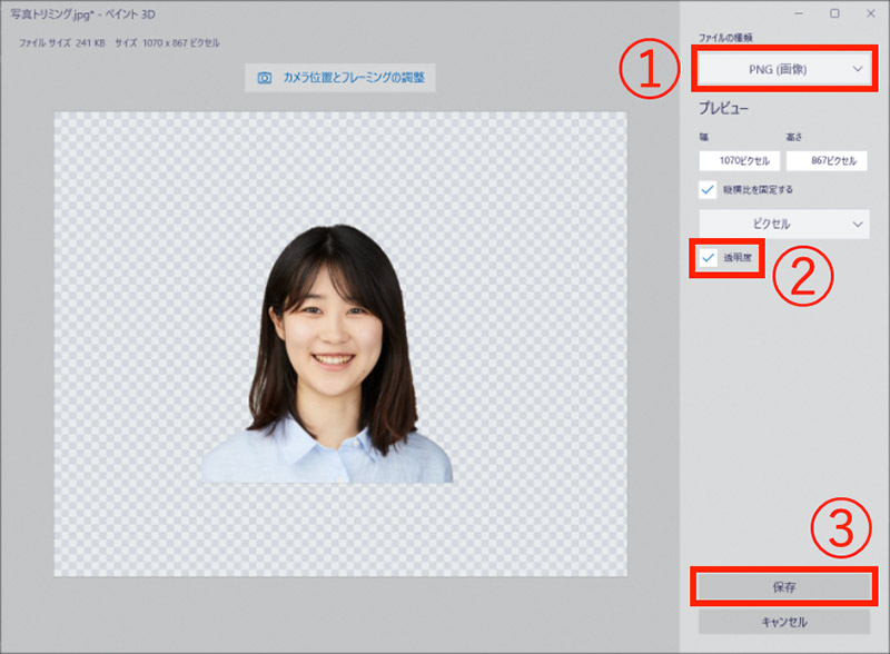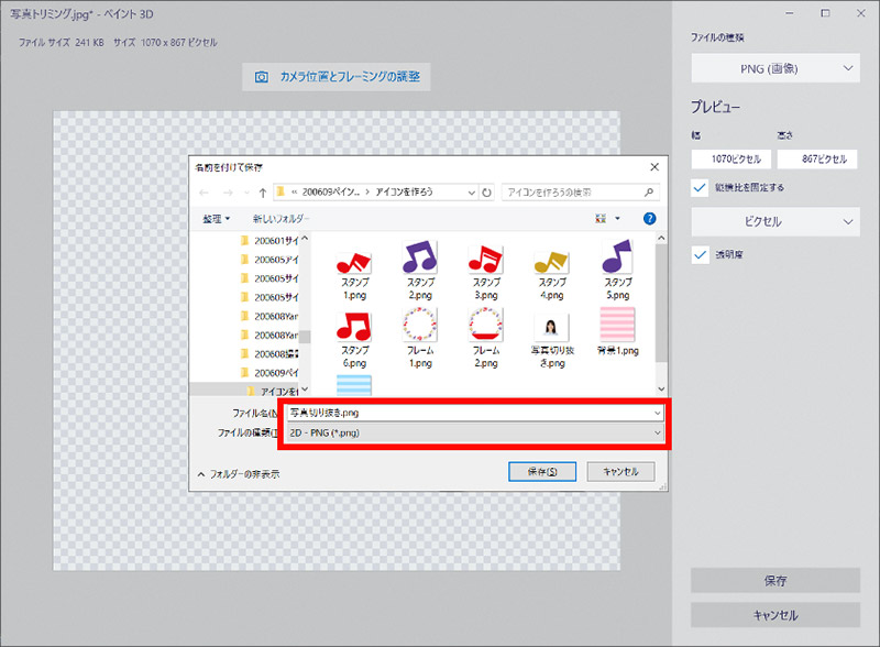 ファイルの種類からPNGを選択、