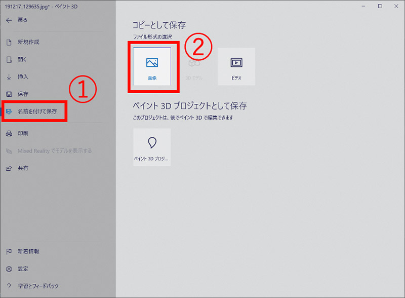「Microsoft ペイント3D」を使って、