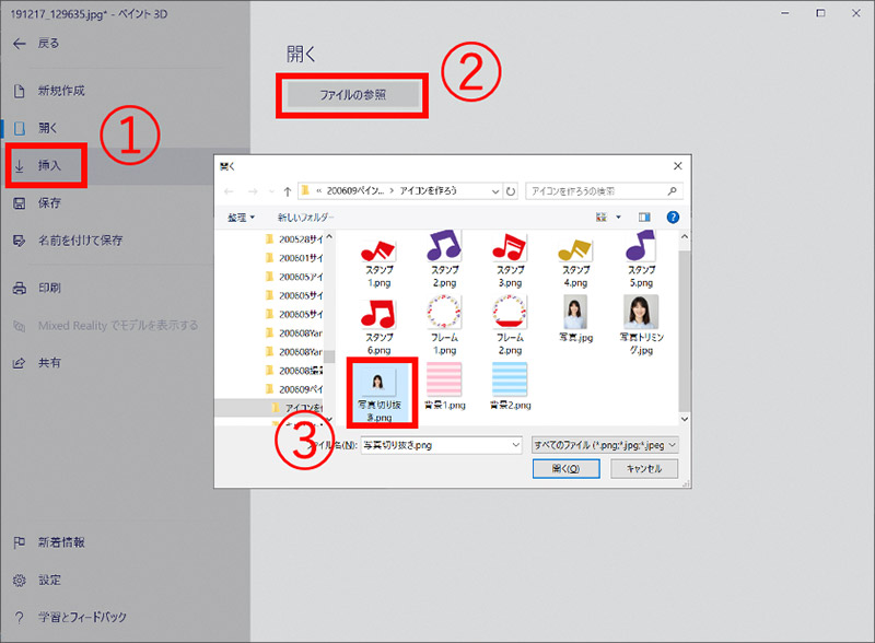 ファイルの参照から「2-1」で切り抜いた