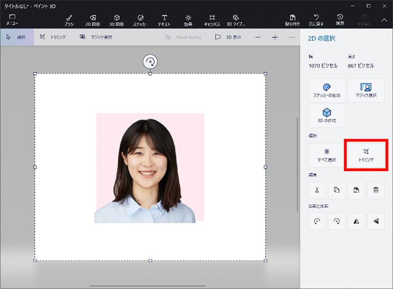 「Microsoft ペイント3D」を使って、