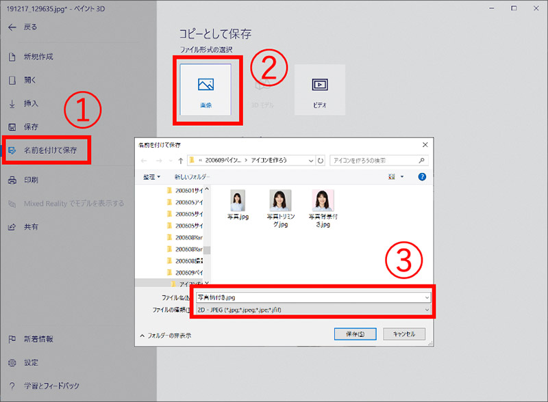 ファイルの種類を2D-JPEGに変更し、任意のファイル名で保存しましょう。