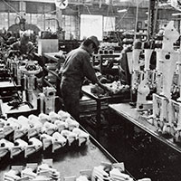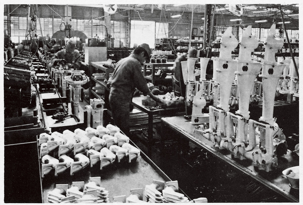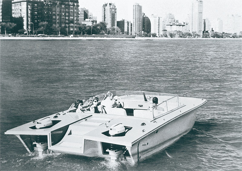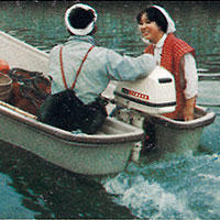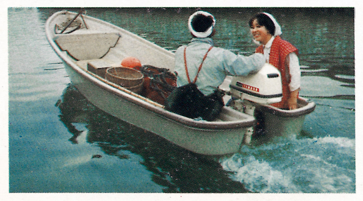 視察のためアメリカに足を運んだ川上社長は、水上レジャーの人気を目にして、「いずれ日本でもこうした光景が普通に見られる時代が来るだろう」と確信した。そして、船外機の開発にチャレンジするとともに、アーチェリーの弓にも使われていた新素材FRPの研究に取り組むよう指示を飛ばした。