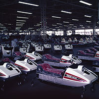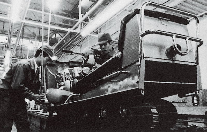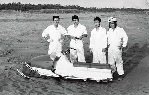 北米テストに持ち込んだ試作機は現地のテストライダーから酷評を受けたが、一つひとつ課題をクリアすることによって、スノーモビル第1号製品「SL350」(1968年)を発売した。