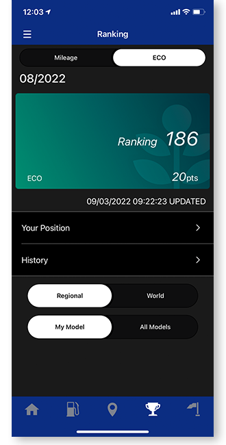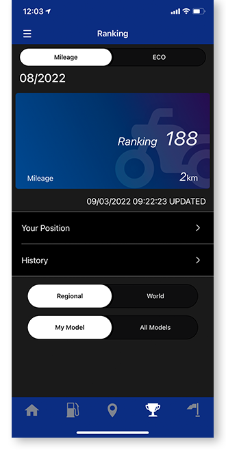 ・ Because only mileage managed by the app is used, the data may deviate slightly from that shown on the meter.
