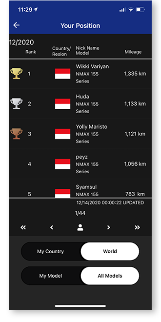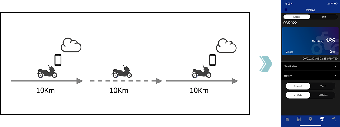 ・ The rankings only reflect the distance traveled while your motorcycle is connected to the Y-Connect app.