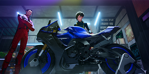 Netflix seemed to share Yamaha Motor's collaborative attitude, and so we also worked together to create the world we see in the animation, which is set in Tokyo 100 years in the future. So, we took part in the worldbuilding process with the directors of the animation and designed the futuristic bikes used in the races in the story.