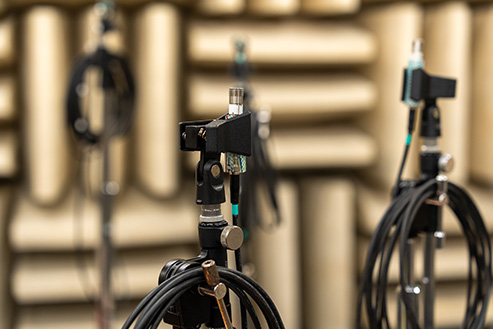 For this recording, we set up eight mono microphones and one stereo mic around the bike in the anechoic chamber. And because we used so many microphones, we could fine-tune the audio balance to match the animation exactly.