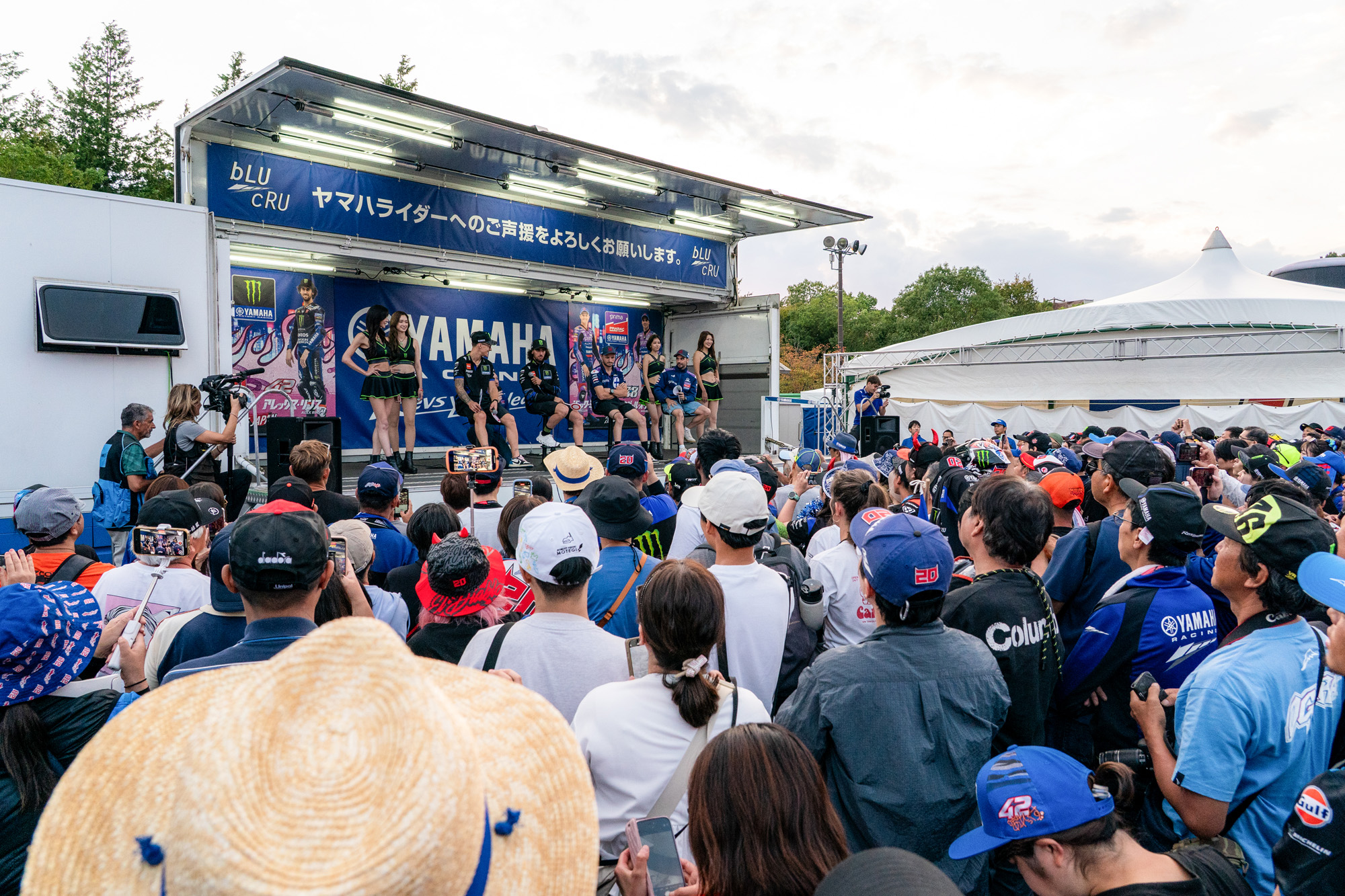 The official stage at the Yamaha Fan Booth played host to all four riders, and as these photos show, quite a few fans came out to watch and listen. The major motivation the riders got from everyone who turned out is clear to see.