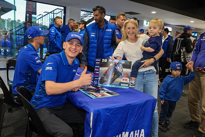 For Kate, the evening was both a professional and personal introduction to Yamaha’s family culture. Staff and guests soaked up the atmosphere of night racing while enjoying exclusive interviews with ASBK stars Mike Jones, JJ Nahlous and riders from the Yamaha supported support classes. A pit walk, lucky door prizes and close up views of the bikes added to the experience.