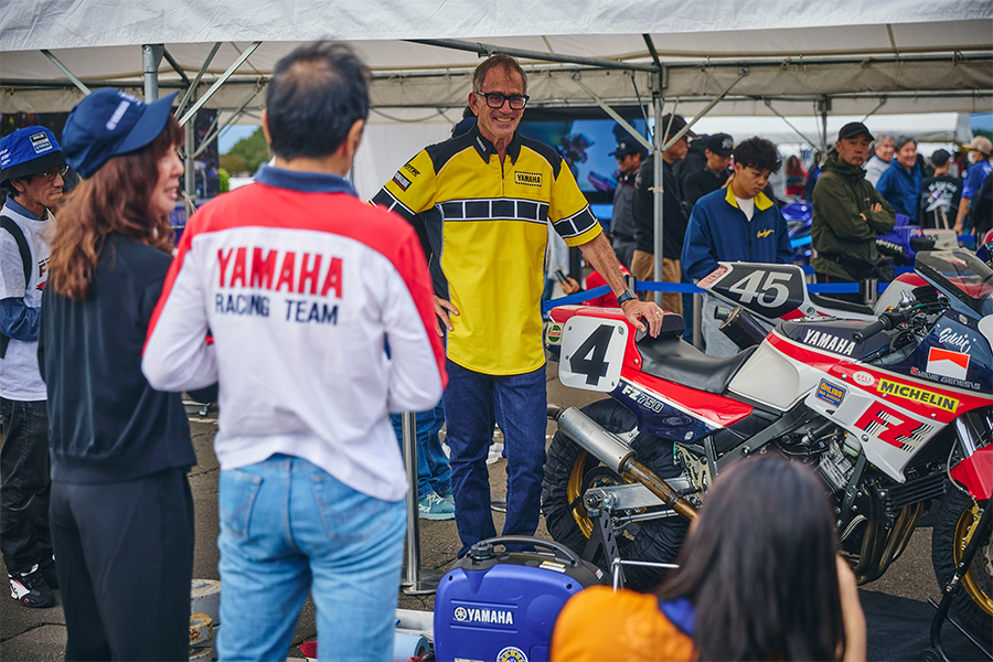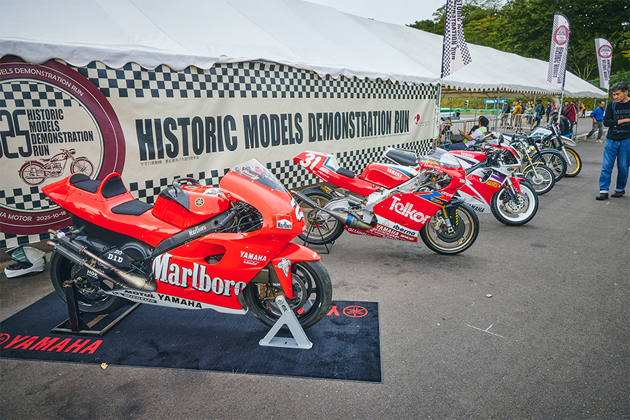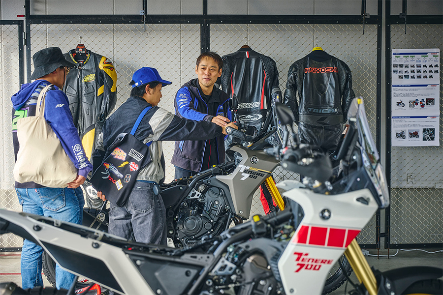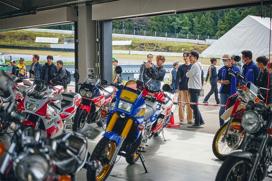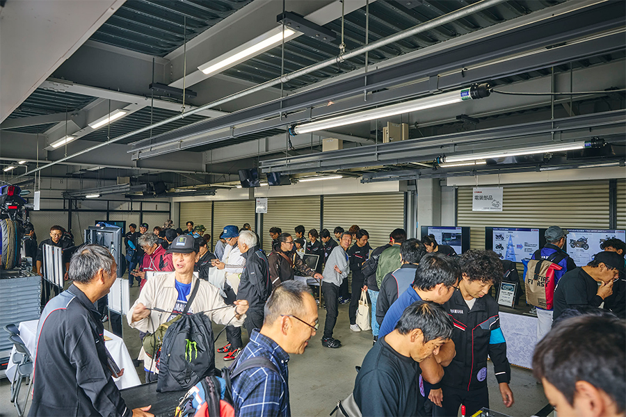 In addition to the historic models, almost all of the current Yamaha models sold in Japan were on display at the venue, including the brand-new YZF-R9. Visitors seemed to enjoy the unique feel of hands-on experience, checking out each model from a variety of angles and hopping on to test their riding positions. Furthermore, various Yamaha departments had booths where they shared information about the latest tech and activities they are working on, and the venue was bustling. In addition, there were all sorts of events, including a demonstration run and talk show featuring NAKASUKA Katsuyuki, and a trial demonstration. Here's a look back at the day in photos.