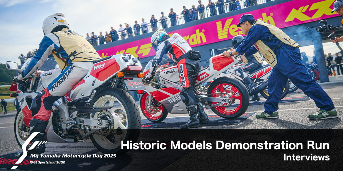 The Historic Models Demonstration Run, one of the centerpieces of the event, was supported behind the scenes by Yamaha’s Restoration Team. This started with selecting which historic models would be run and carefully maintaining each of them. To be extra careful, they also performed test runs on a different course before the actual Demonstration Run at SUGO, and it apparently took almost two years in total to prepare. After the Historic Models Demonstration Run, we asked the Team how they felt now that the event was over.