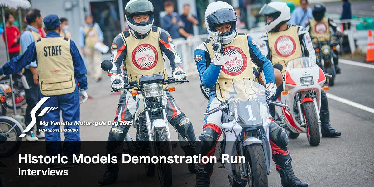This event was meant to allow customers to enjoy seeing historic models running and to deepen their grasp of Yamaha's history, but we also wanted to give Yamaha employees in Japan and overseas the same experience. We asked everyone in our Motorcycle Testing Divisions to be a rider in the runs this time. I'm grateful to them for providing runs that charmed visitors, even though some of them were riding the models for the first time.