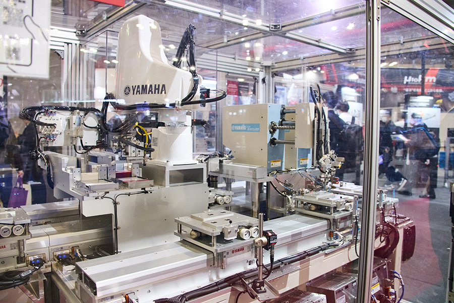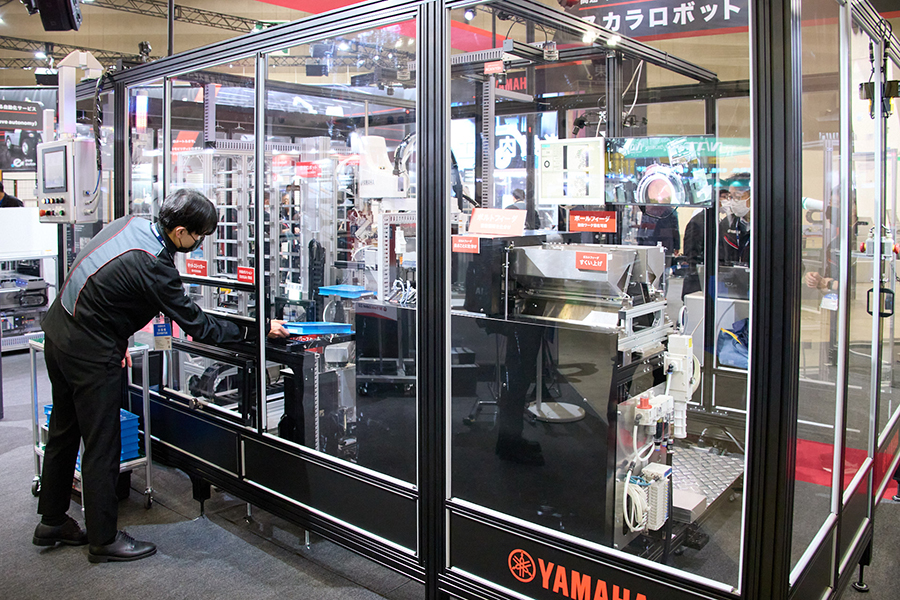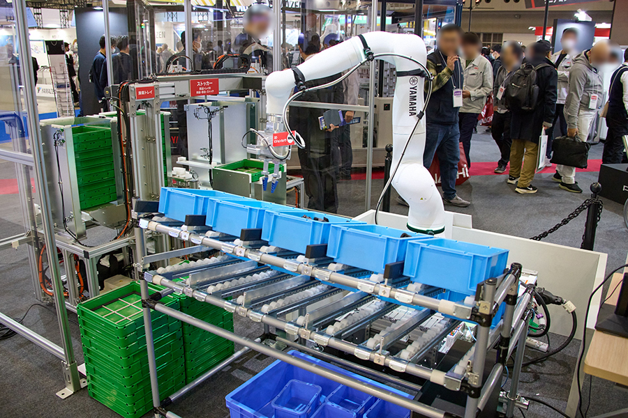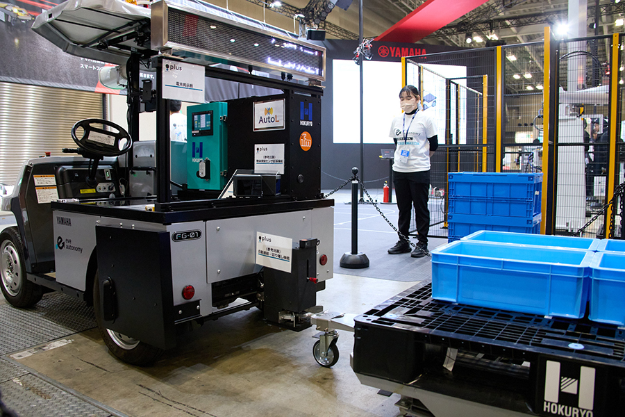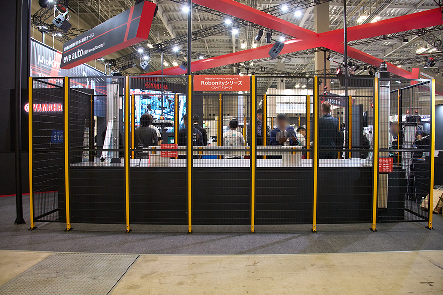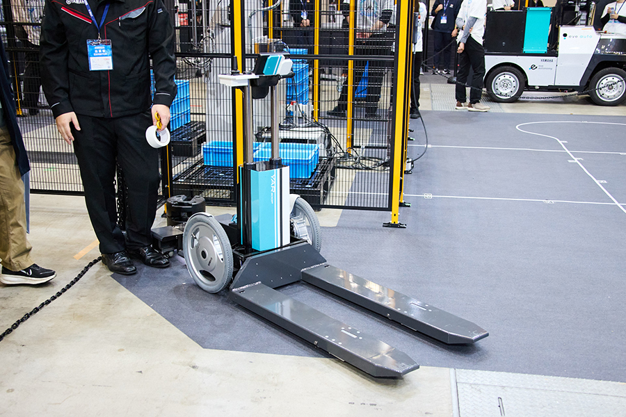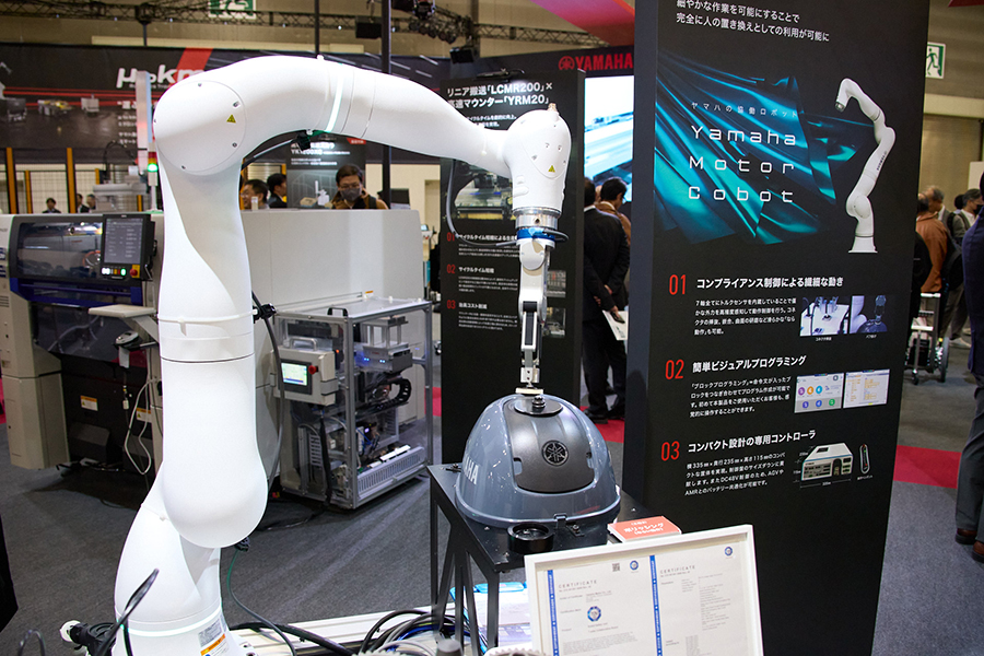 Yamaha Motor exhibited with the exhibition concept of "μ to km (microns to kilometers) ~ Robotics Transportation ~"and presented demonstrations of its newly developed Linear Conveyor Module and 7-axis Yamaha Motor Cobot, along with solution proposals that combine compact automated guided vehicles (AGVs) with autonomous transport vehicles designed for both indoor and outdoor use which utilize the Company's golf car technology.