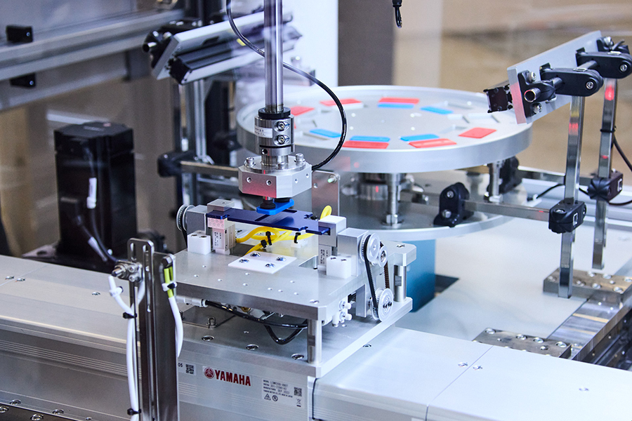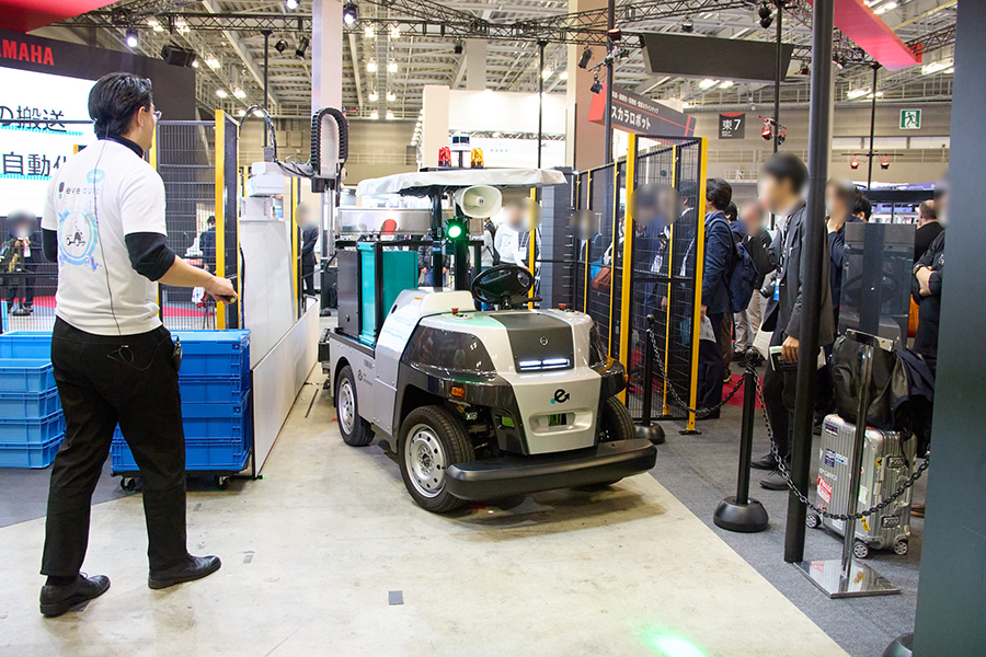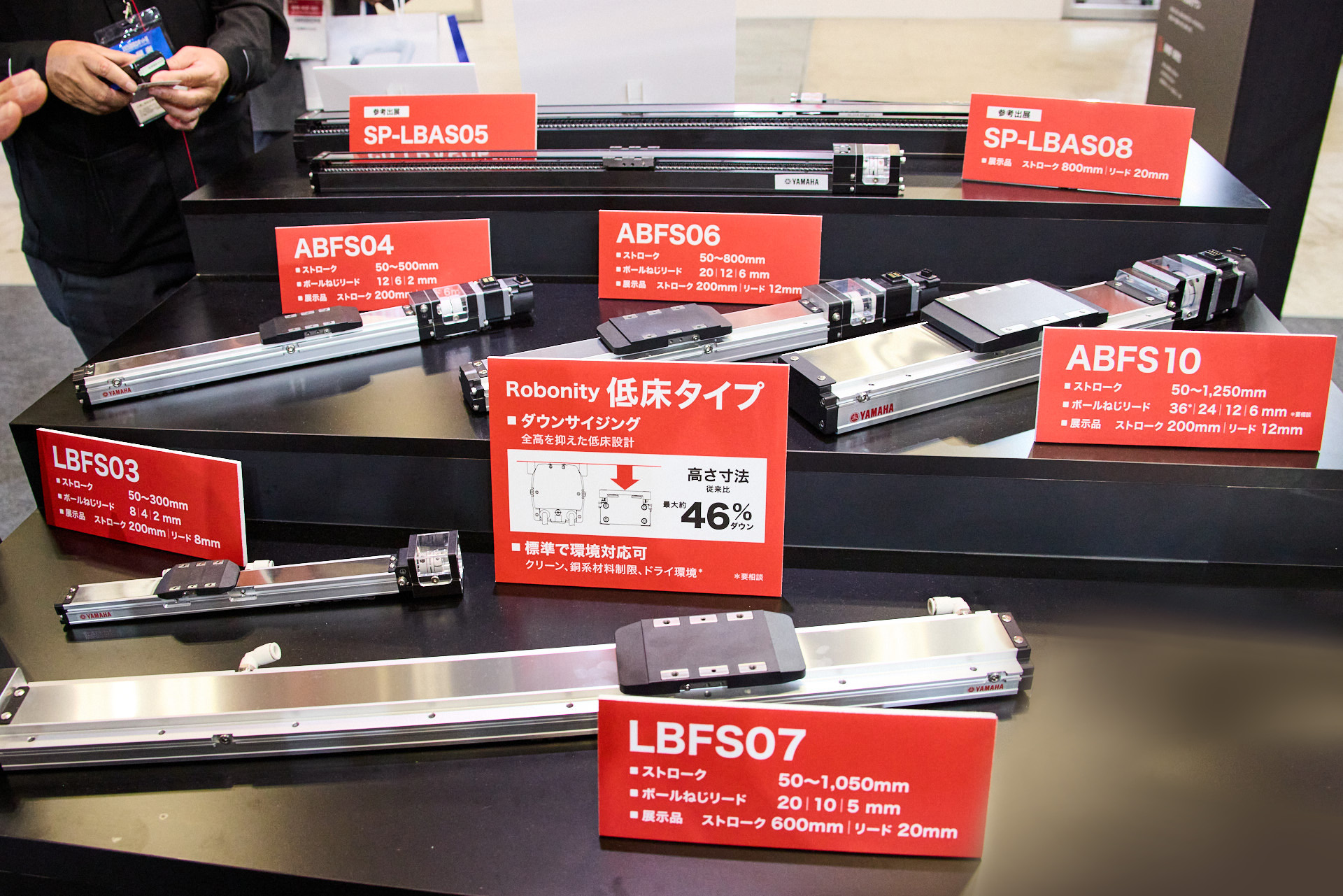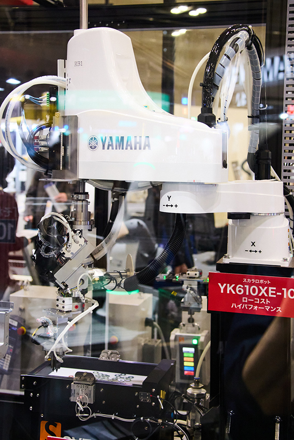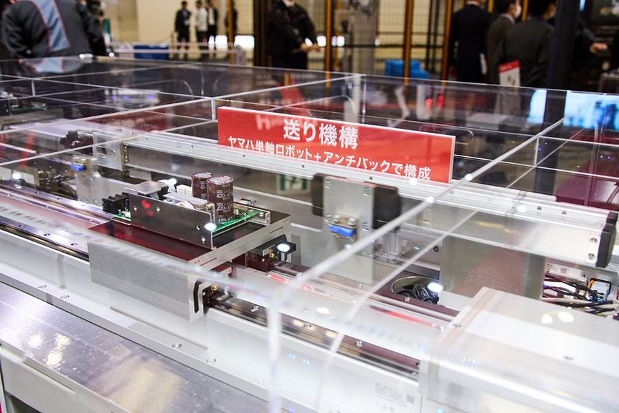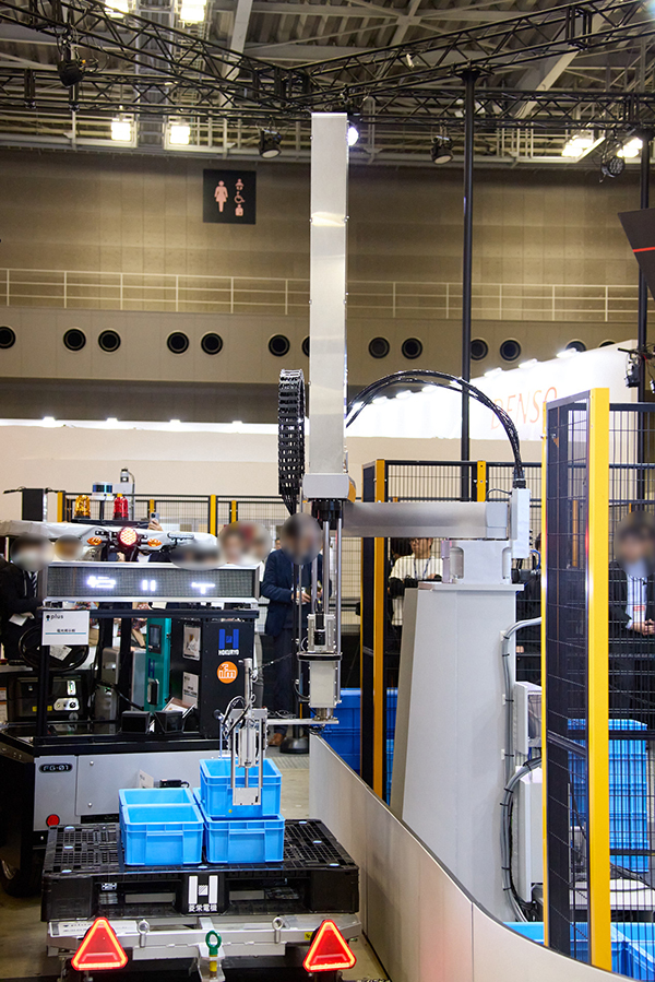 Yamaha Motor exhibited with the exhibition concept of "μ to km (microns to kilometers) ~ Robotics Transportation ~"and presented demonstrations of its newly developed Linear Conveyor Module and 7-axis Yamaha Motor Cobot, along with solution proposals that combine compact automated guided vehicles (AGVs) with autonomous transport vehicles designed for both indoor and outdoor use which utilize the Company's golf car technology.