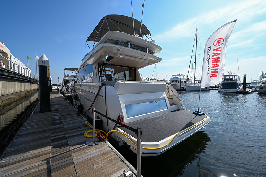 The Yokohama Bayside Marina was the stage for displaying bigger craft out on the water, and three cruisers from Prestige—Yamaha Motor is the brand’s official importer for the Japanese market—were moored for visitors.