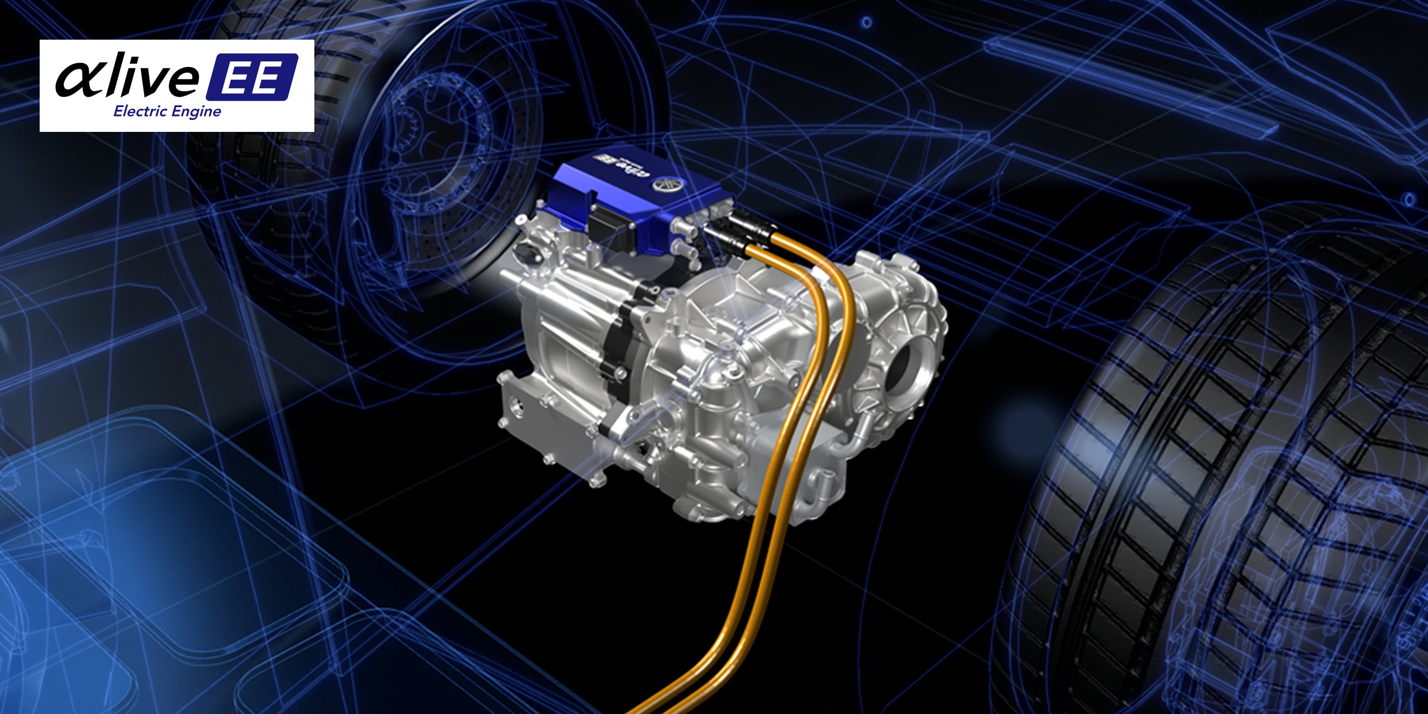 This electric drive unit currently under development for automotive applications is aimed at future supply to carmakers. It employs a 3-in-1 structure integrating the motor, inverter, and gearbox, and delivers high output while remaining light weight and compact. The unit is compatible with a variety of automobile types, with input voltages ranging from 350V to 800V and outputs of 200 kW to 450 kW possible.