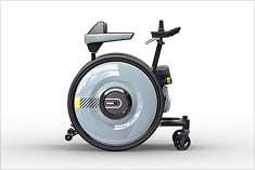 These wheelchairs are meant for going on journeys and both are equipped with the JWG-1 wheelchair electric power unit. Thanks to their attachment system, users can customize their wheelchair's appearance and functions to suit their destination. The ONE-MAX Urban is well-suited for light urban travel, featuring a compact chassis with a latticed seat design that reduces user fatigue. It also comes with a storage box for small items and an accessory bar for mounting a smartphone. Its partner model, the ONE-MAX Historical, features a premium look and feel reminiscent of a finely crafted travel bag. Its chassis ensures stable travel across temple and shrine grounds as well as the cobblestone streets of historic districts, while the leather-textured seat and other details exude craftsmanship.